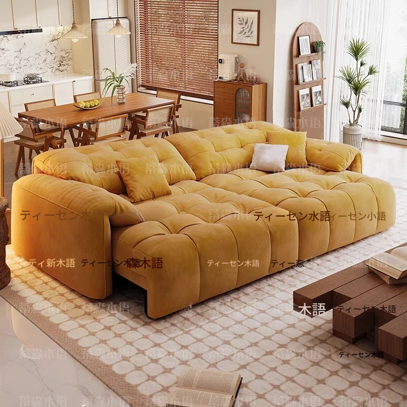 壁に寄せない羊毛フリース直線型電動ソファ - 多機能でレトロなフレンチスタイル、人気のふわふわマシュマロソファ!快適さとデザインを兼ね備えたあなたのリビングにぴったり!
