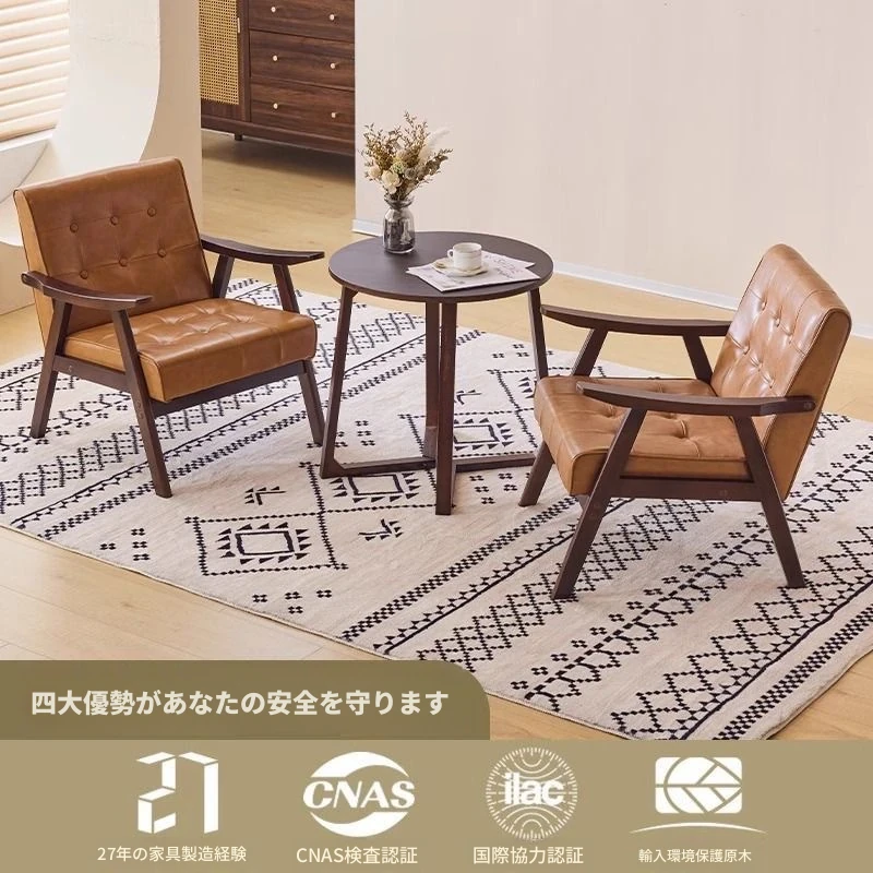 モダンシンプルなバルコニー用ティーテーブルセット - おしゃれな3点セット!宿泊施設にもぴったりな実木製の椅子2脚とテーブル1台で、リラックスしたひとときを演出します。おしゃれなインテリアで心地よい空間をお楽しみください!