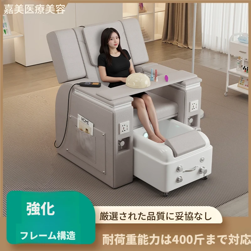 多機能ネイル&フットマッサージソファチェア - 電動調整可能、リラックスできる背もたれ付き、ネイルサロン専用のフットバスとマッサージ機能で、極上の癒しを提供します!