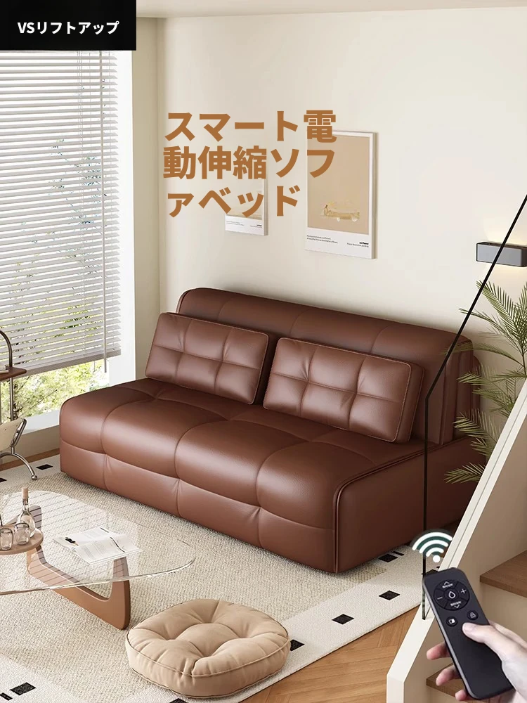 2025年新款!壁に寄せない機能付き本革ソファベッド。リビングに最適な現代的な折りたたみ二用途デザイン、スマート電動ソファで快適さとスタイルを両立!