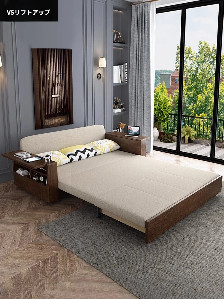 香港送料無料!折りたたみ式実木ソファベッド - 多機能でリビングにも最適!コンパクトなデザインで、バルコニーや小さな空間でも大活躍!収納もできる二人用ベッドで、快適な生活をサポートします。