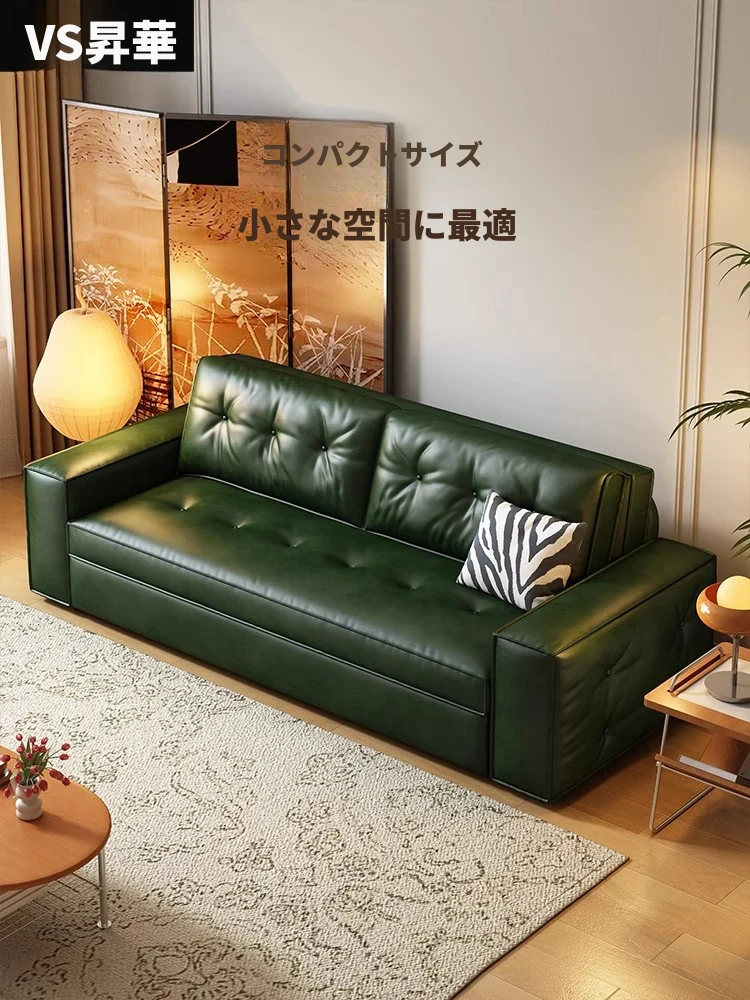 溢升レトロ本革ソファベッド - 折りたたみ式・2WAYデザイン!新作の高級小型リビング向け、多機能ストレッチ可能で、ベッドとしても使用できる!快適な空間を演出します。