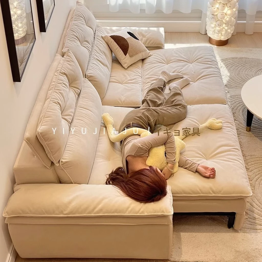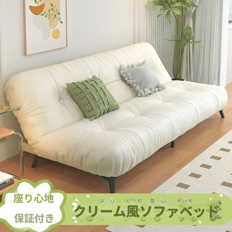 [香港送料無料] 2024年新作!フレンチスタイルの雲のようなソファ - 小型リビングに最適な折りたたみ式ソファベッド、猫の爪も気にならないクリーム色の皮革仕上げ!快適さとスタイルを両立させた一品です。