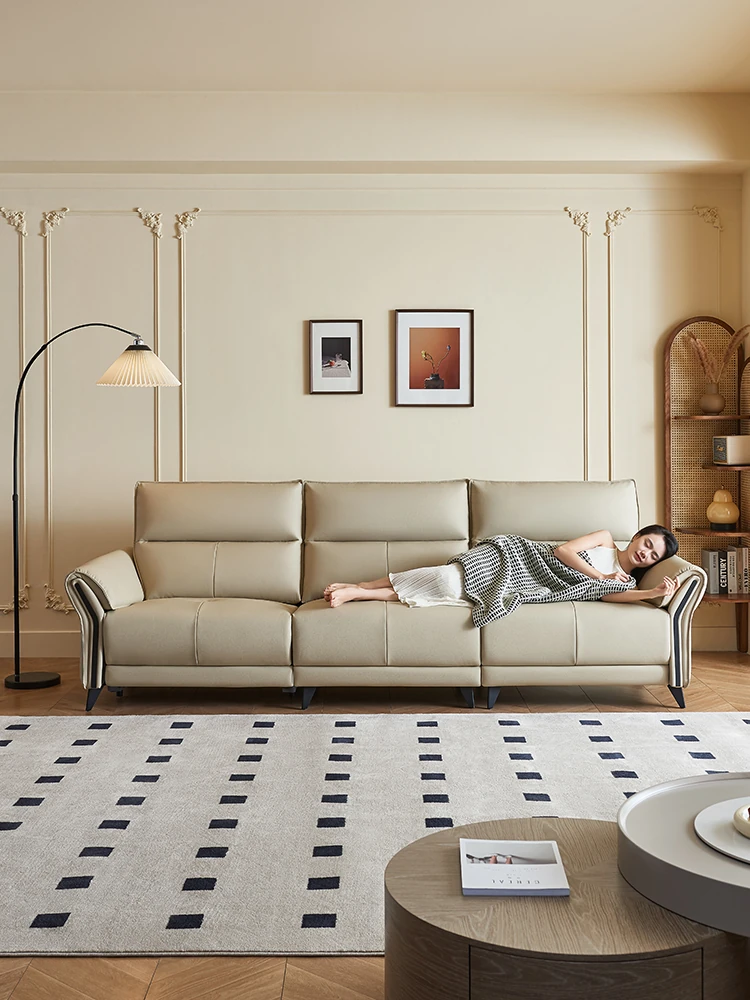 デザイナー皮製ソファ ヴィラ向け大平面リビング用ストレートソファセット イタリアンモダンなラグジュアリー本革ソファで、贅沢な空間を演出!