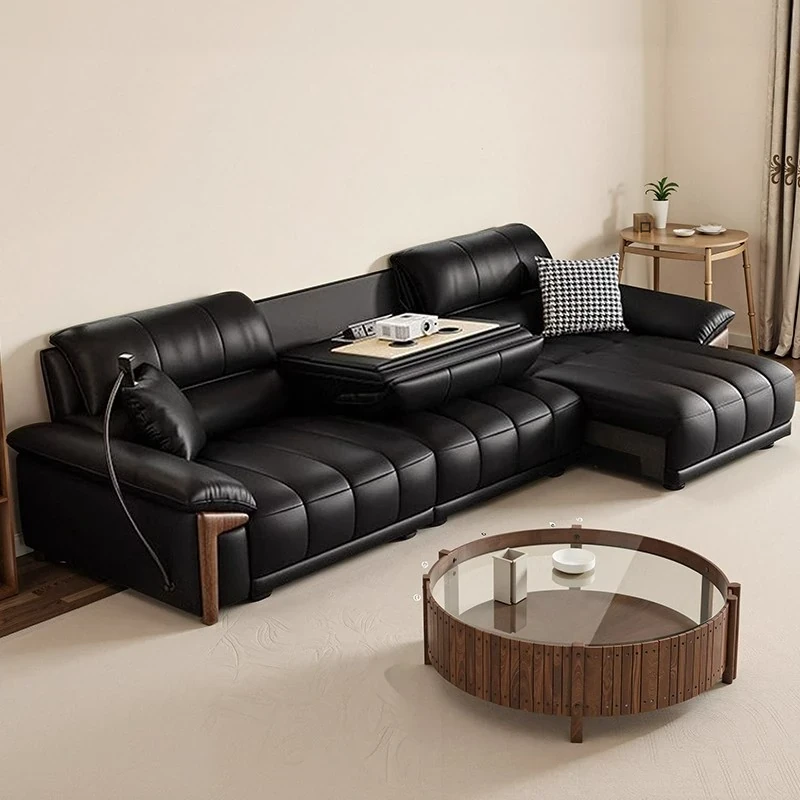 豆腐ブロック電動機能ソファ|リビングに最適な本革イタリアンミニマリストスタイルのブラック牛頭キャビンソファ|快適な座り心地で贅沢な空間を演出!