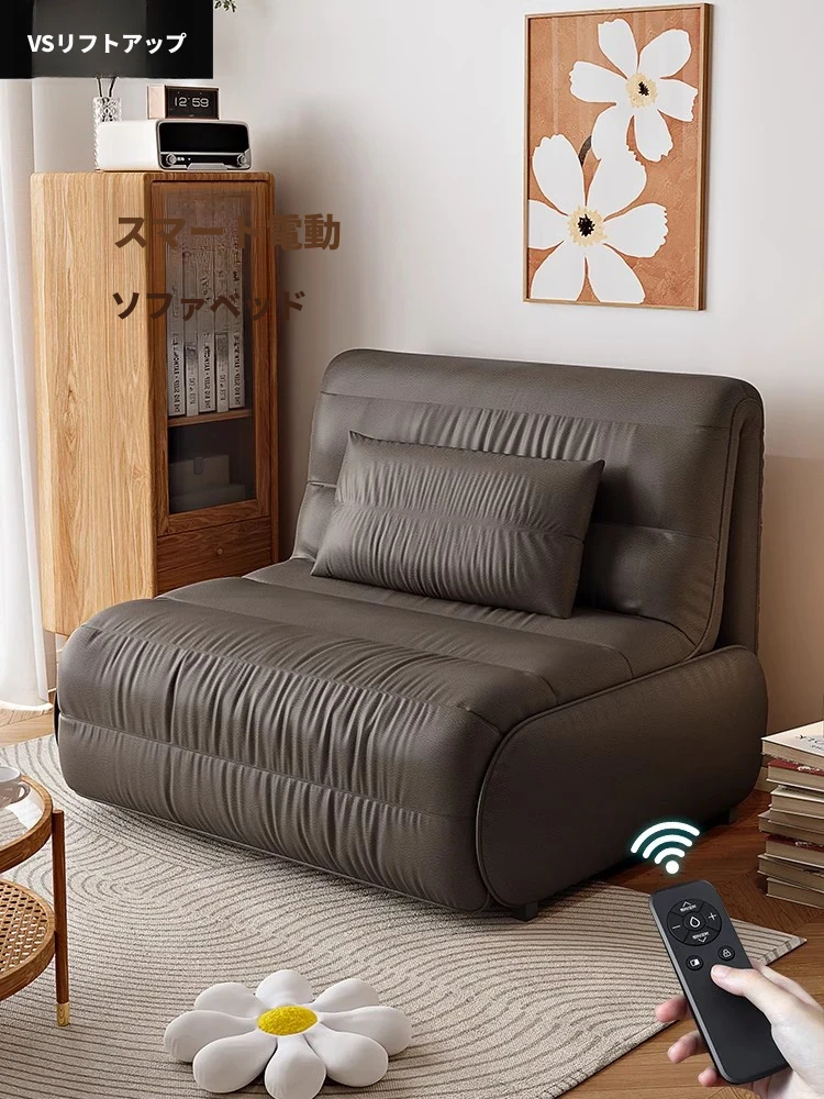 優雅な電動レザーソファベッド - 多機能・スマート・伸縮式!北欧デザインのコンパクトな一人用折りたたみソファ!新作登場、あなたの小さな空間にぴったり!