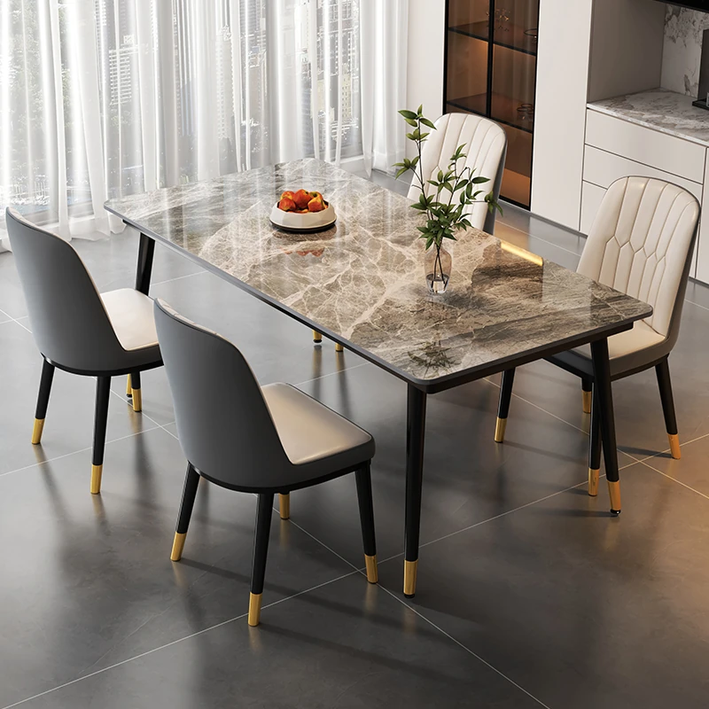 【香港送料無料】スタイリッシュな現代的な岩板ダイニングテーブル - 小型住宅に最適なシンプルでラグジュアリーな長方形テーブル、リビングルームにぴったり!