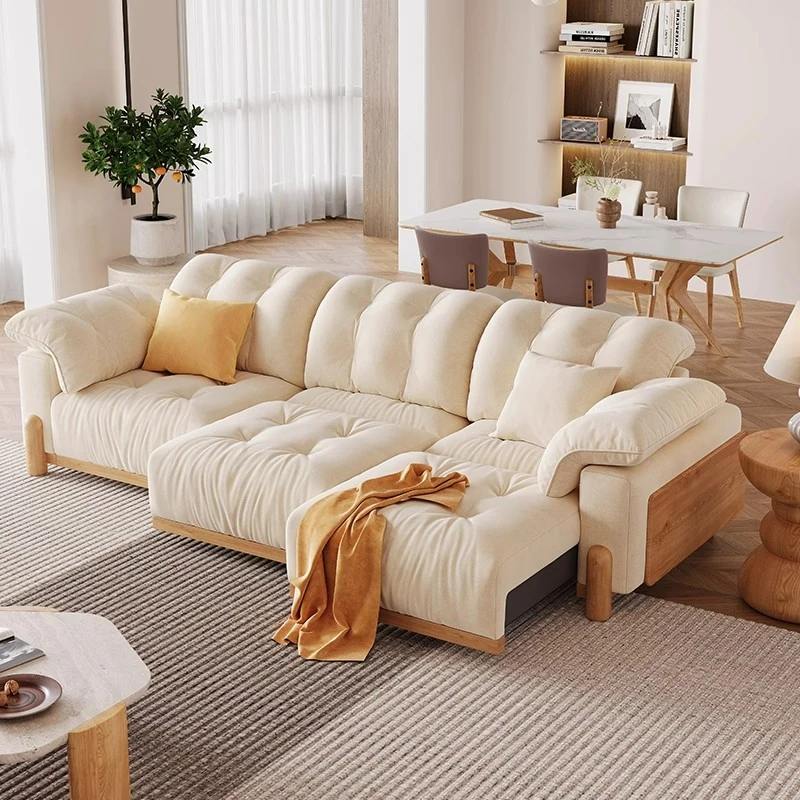 Italian Minimalist Fabric Sofa - Designer Cream Modular Combination for Stylish Villas and Home Use, Premium Quality Sofa Chairs