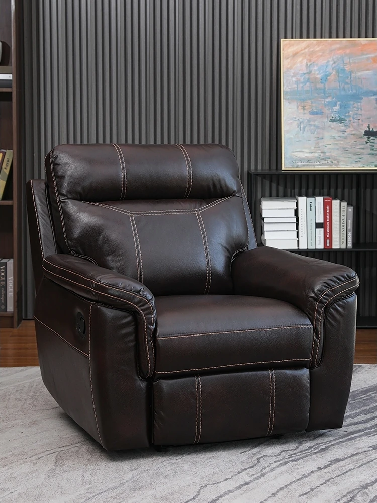 Modern Luxury Genuine Leather Sofa Set for Villas - Complete Living Room Coordination with Contemporary Italian Minimalist Design