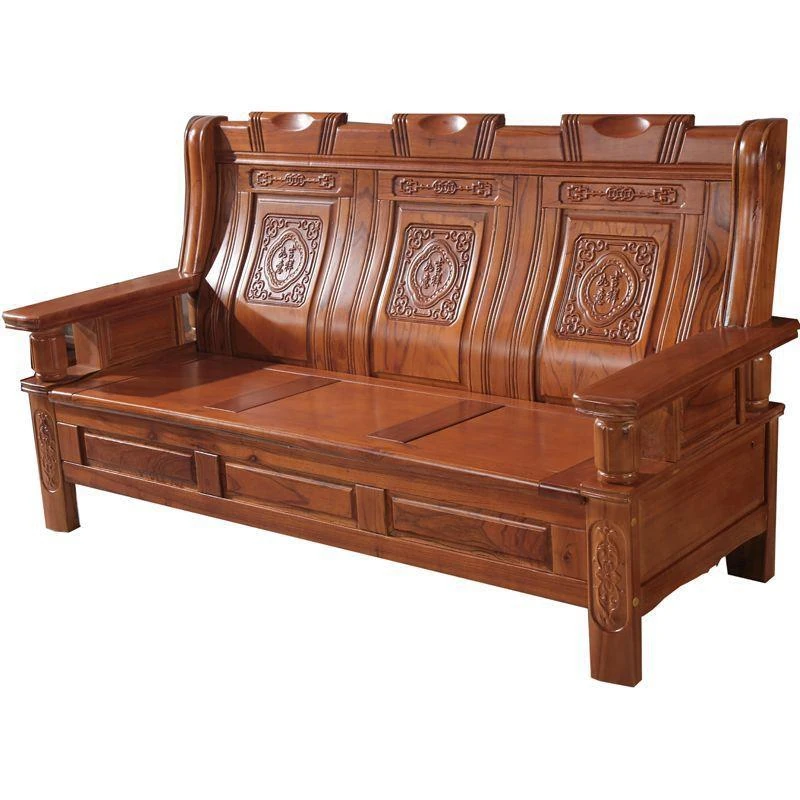 【Free Shipping in Hong Kong】Stylish New Chinese Solid Wood Sofa Set - Compact and Affordable Three-Seater Bench for Living Room, Perfect for All Seasons