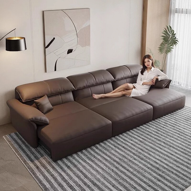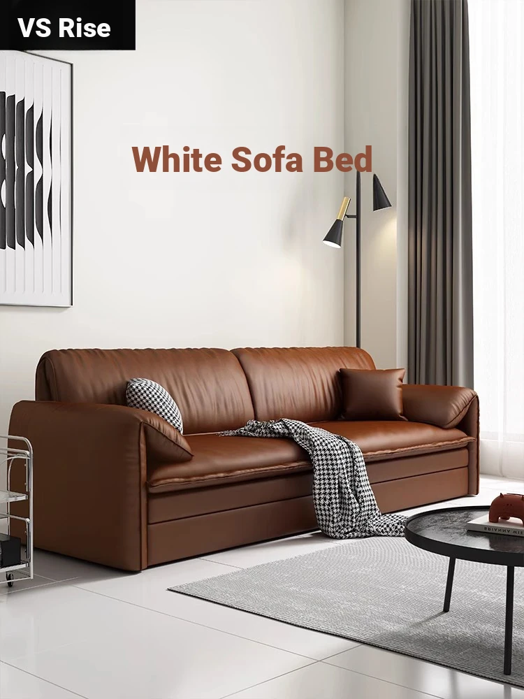 Versatile Electric Leather Sofa Bed for Small Living Rooms - Modern Minimalist Design with Top-Grain Cowhide, Stretchable and Space-Saving!