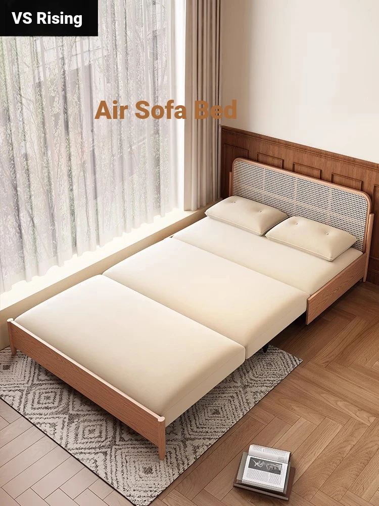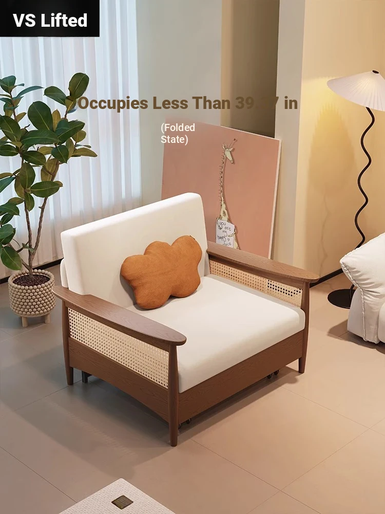 Elevate Your Space: Versatile Rattan-Style Foldable Sofa Bed for Small Living Rooms - Stylish Solid Wood Design for Home Use, Perfect for Couples and Multi-Functional Needs!