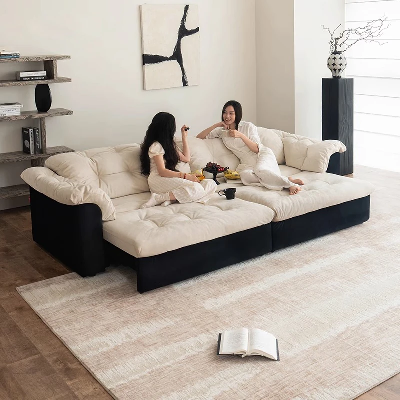 New Electric Folding Sofa Bed - Versatile and Space-Saving Design for Small Spaces, French Vintage Style Cloud Sofa in Black & White, Perfect for Relaxation and Chic Home Decor