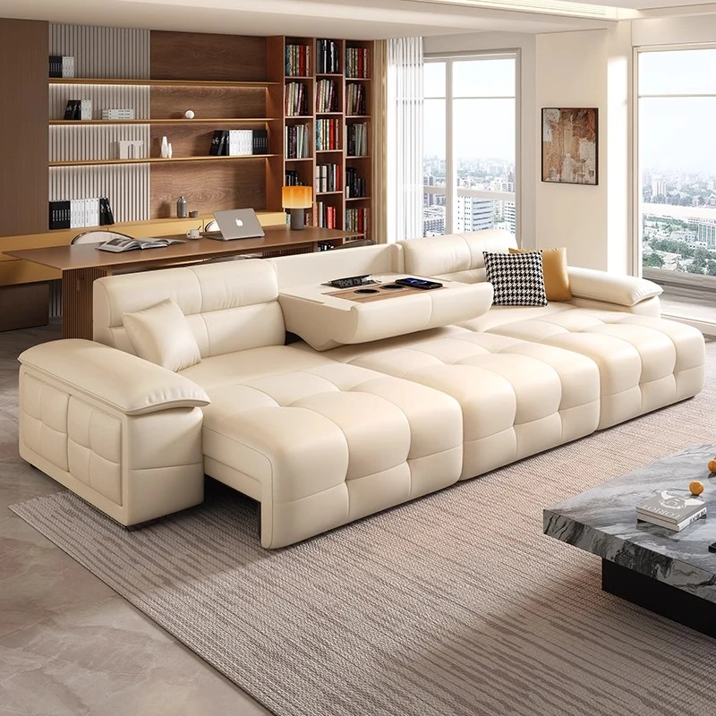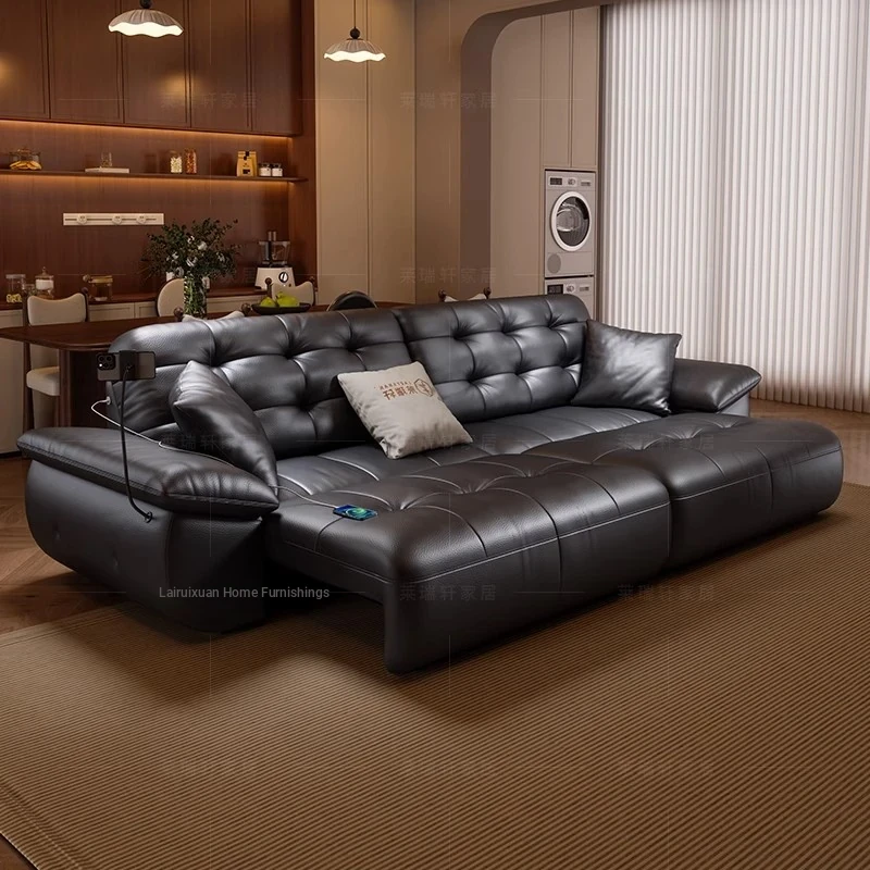 Elephant Ear Electric Leather Sofa Bed - Versatile, Extendable, Multi-Functional for Spacious Living Rooms - Italian Style Light Luxury Design