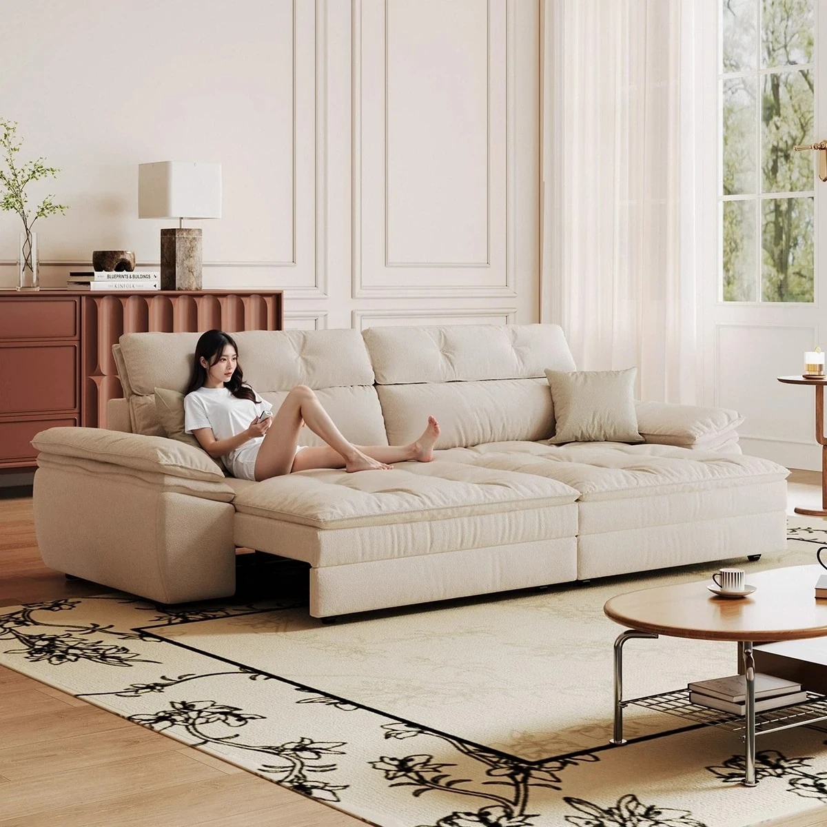 2025 New Cream-Colored Electric Sofa: Adjustable Dual-Use, Wall-Hugging Chenille Design for Ultimate Comfort in Your Living Room
