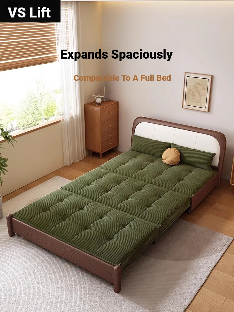 Elevate Your Space: 2025 New Modern Minimalist Foldable Solid Wood Sofa Bed with Luxurious Corduroy - Perfect Multi-Functional Solution for Small Living Rooms!