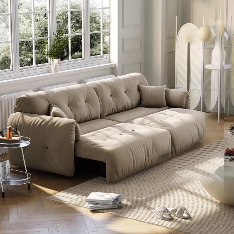 Transformable Cloud-Like Sofa Bed - Multi-Functional Electric Cream Fabric Couch with Scratch-Resistant Cover for Living Room, Perfect for Pets and Relaxation