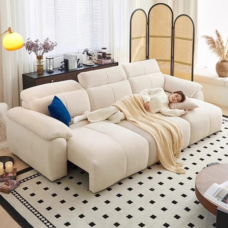 Creamy Wind Electric Sofa Bed - Multi-functional, Expandable, Space-saving for Small Living Rooms, Simple Design with Cat Scratch-resistant Fabric