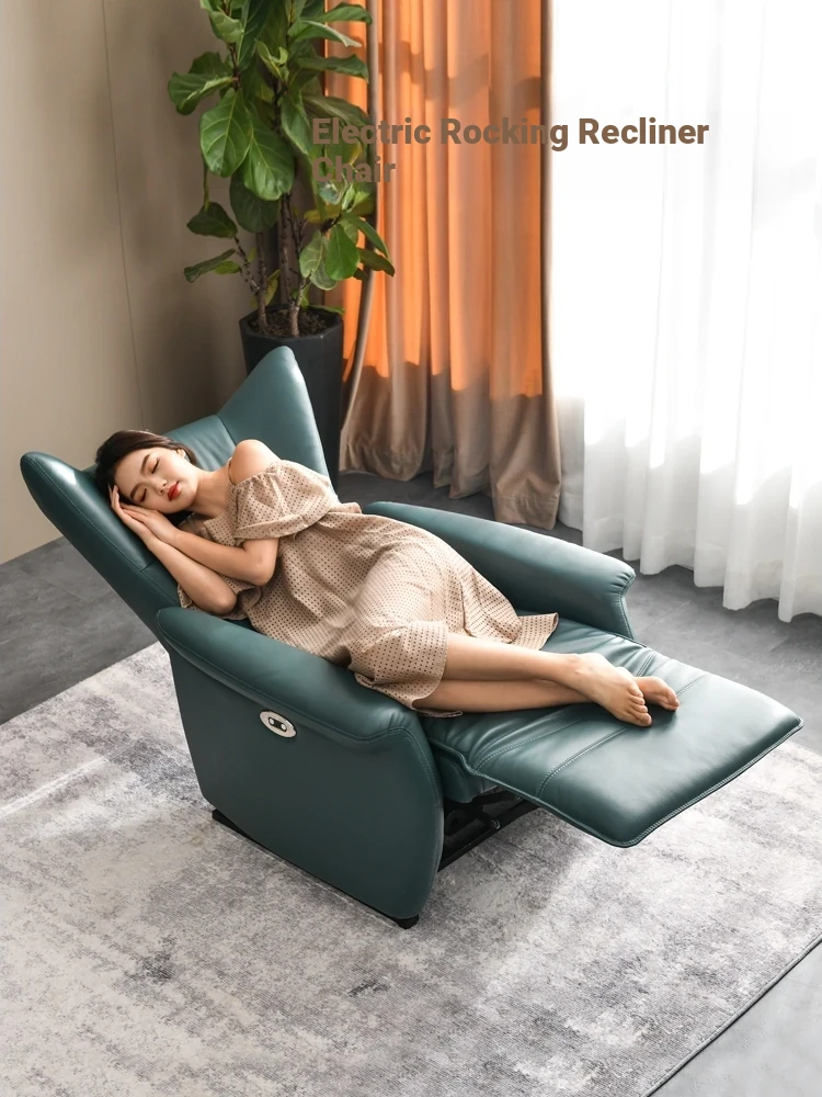 Imported German Qianjiafu Genuine Leather Smart Electric Rocking Chair - Premium Multifunctional Recliner for Home and Office Relaxation