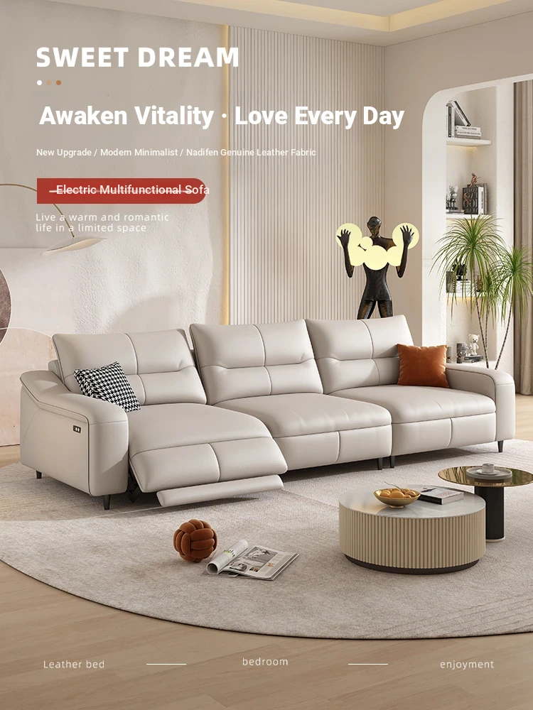 Italian Minimalist Electric Reclining Sofa for Living Room - 3-Seater, Space-Saving, Multifunctional Genuine Leather Couch for Small Apartments