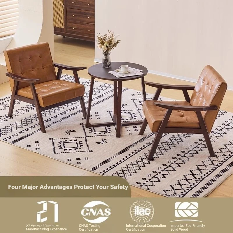 Modern Minimalist Balcony Tea Table and Chair Set - 3-Piece Solid Wood Furniture for Cozy Guest Rooms, Featuring 1 Table and 2 Stylish Chairs. Perfect for Relaxation and Enjoying Nature!