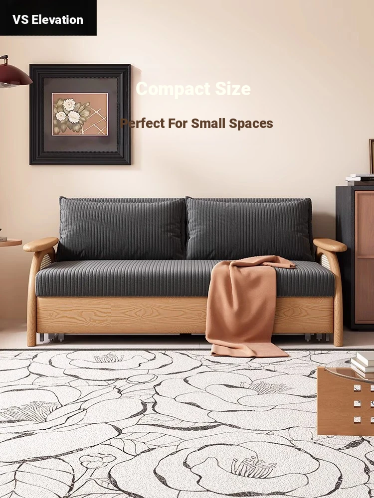 Elevate Your Space: Japanese-Style Multifunctional Foldable Sofa Bed with Storage - Ideal for Small Apartments, Featuring Cozy Corduroy and Durable Solid Wood for Comfort and Style.