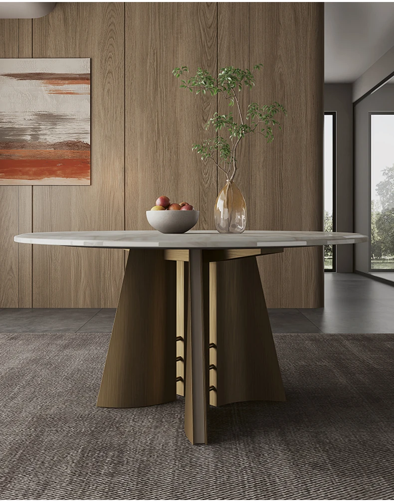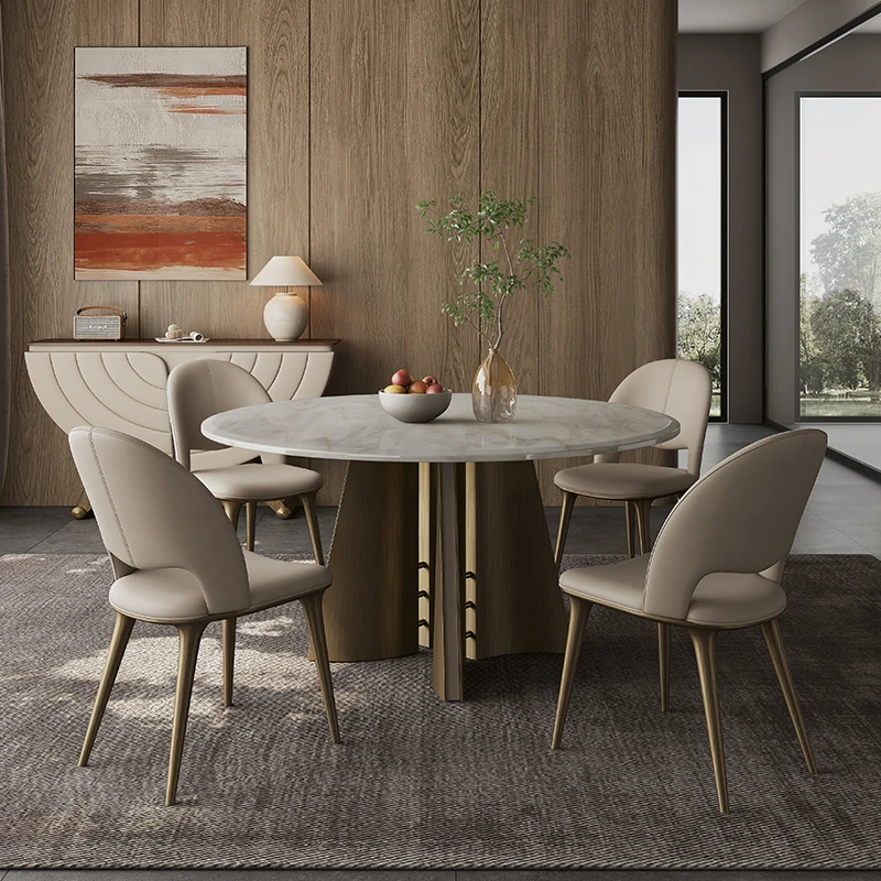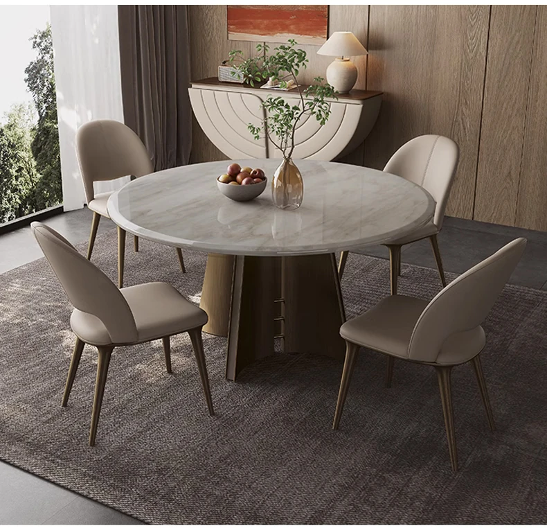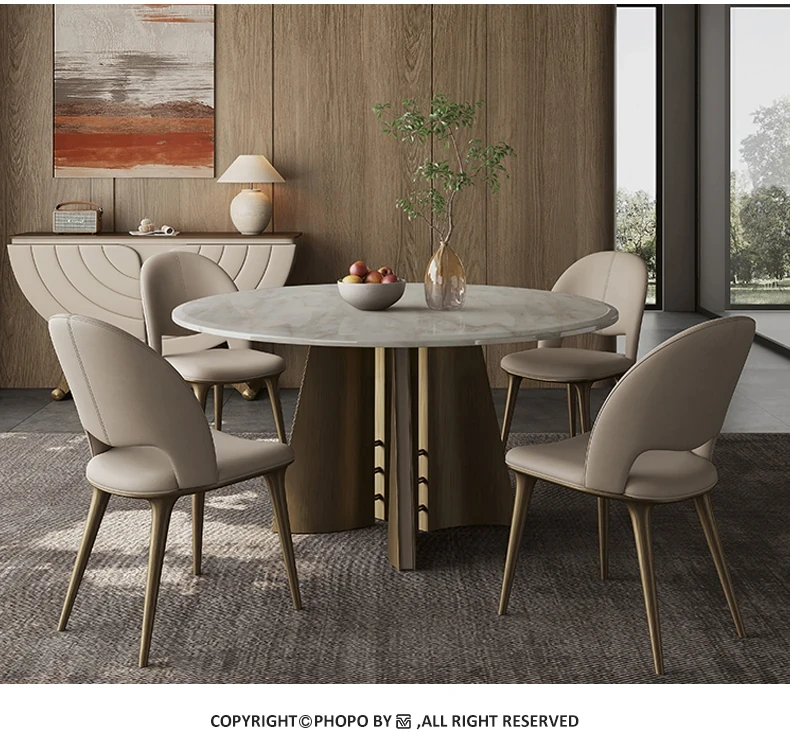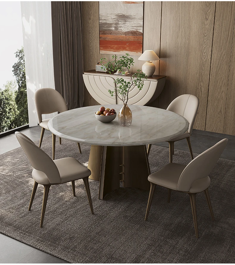 2023 Italian Minimalist Round Marble Dining Table - Luxury Modern Design for Spacious Villas, Perfect for Elegant Dining Experiences