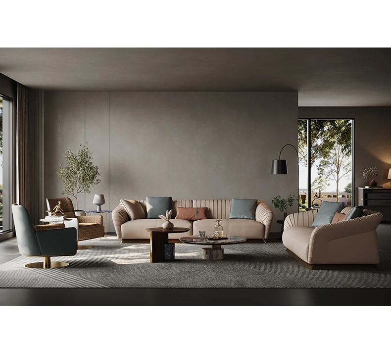 2023 New Minimalist Italian Sofa - Designer Living Room Luxury Leather Sofa for Villas and Modern Open Spaces