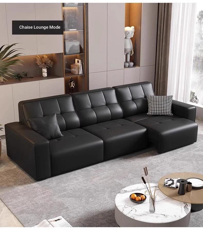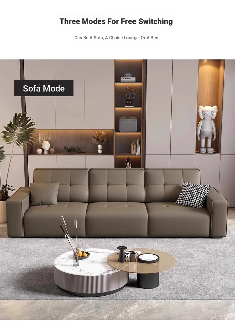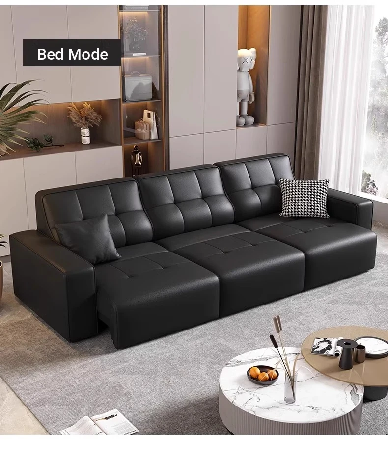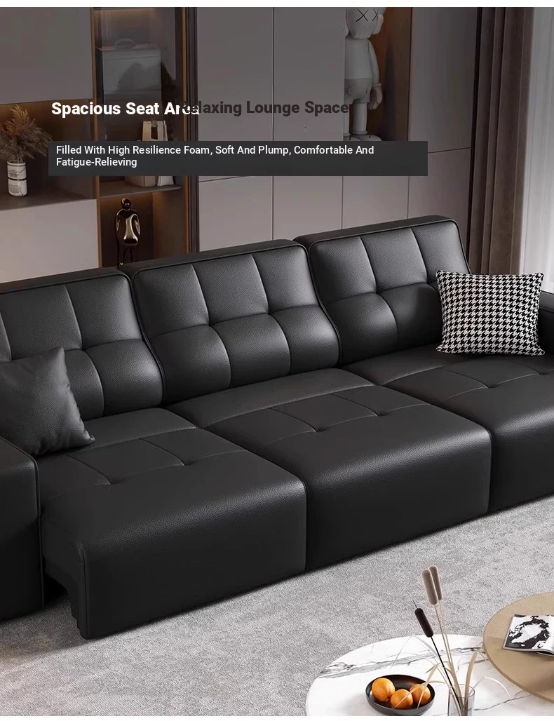 2024 New Italian Minimalist Electric Multifunctional Top Grain Leather Sofa Bed - Stylish and Comfortable Living Room Essential