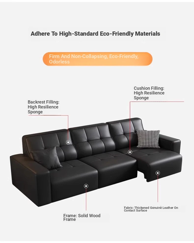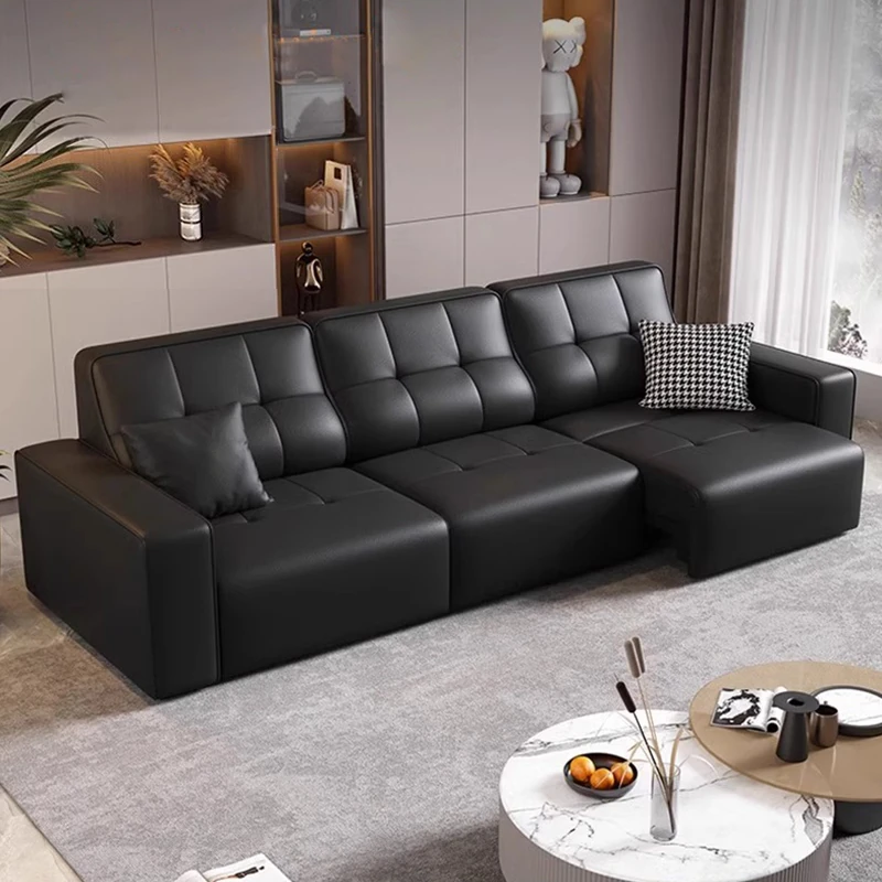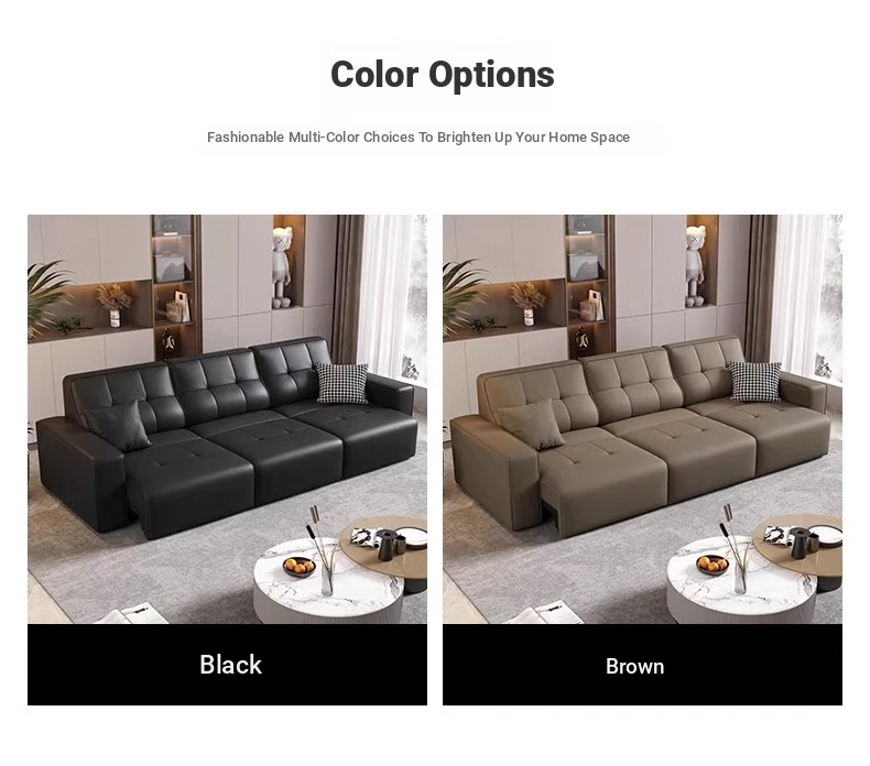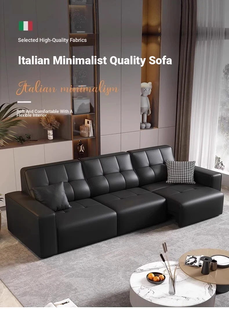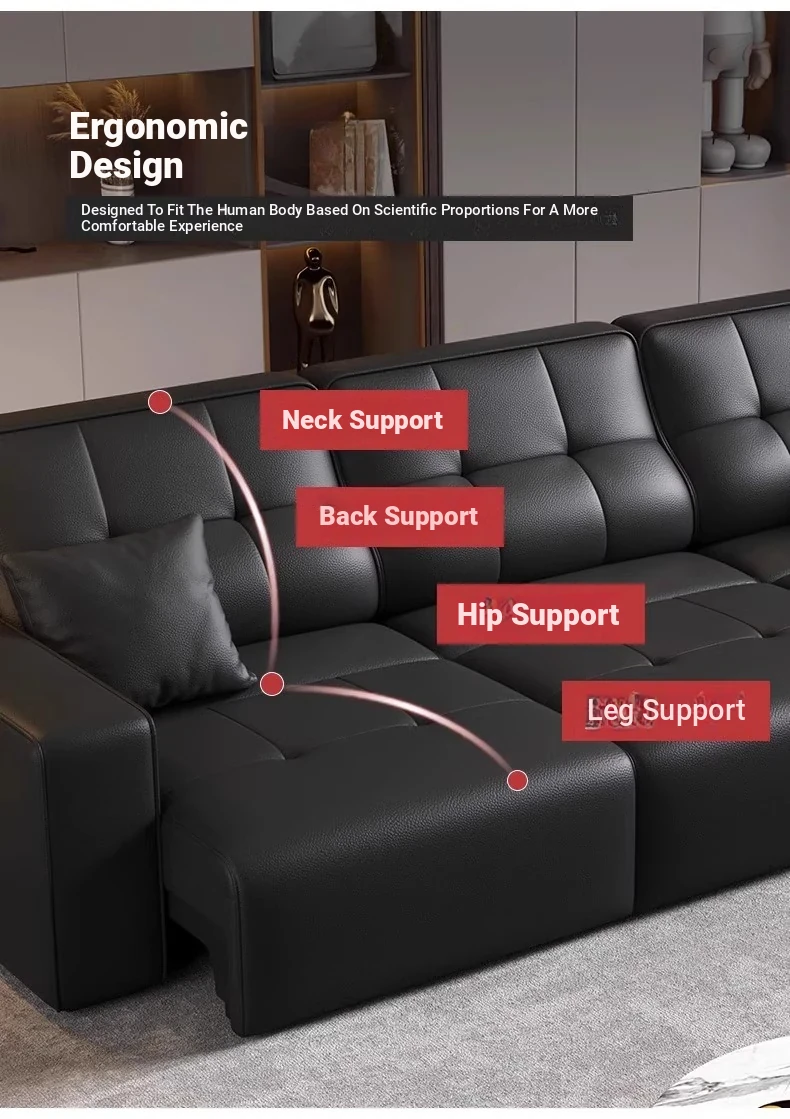 2024 New Italian Minimalist Electric Multifunctional Top Grain Leather Sofa Bed - Stylish and Comfortable Living Room Essential