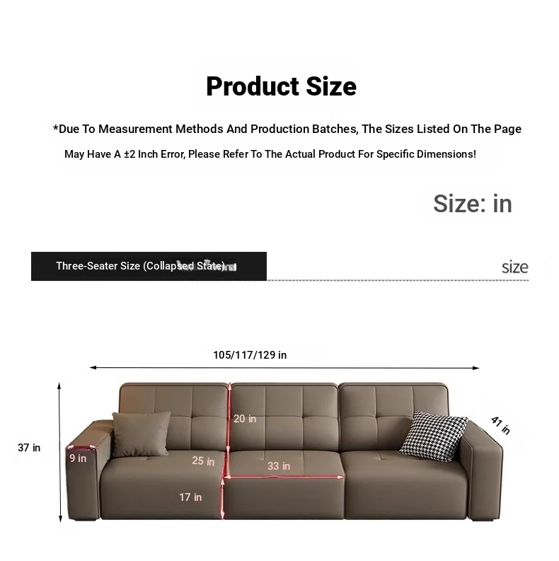 Three people 129.13 ins [contact surface leather + 45D high density rebound sponge + all electric]]
