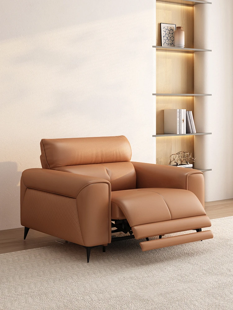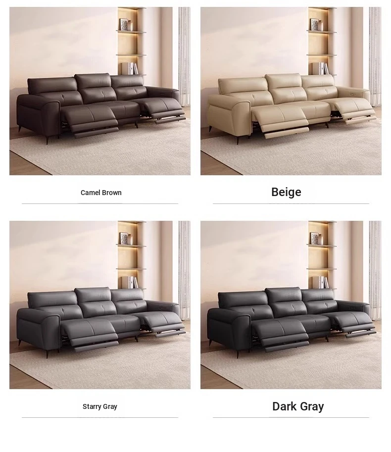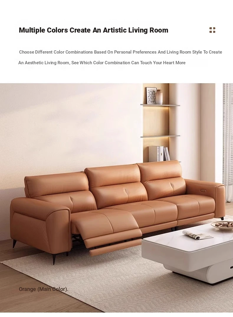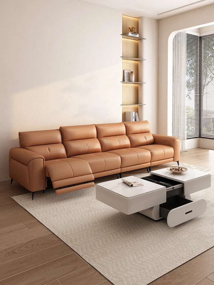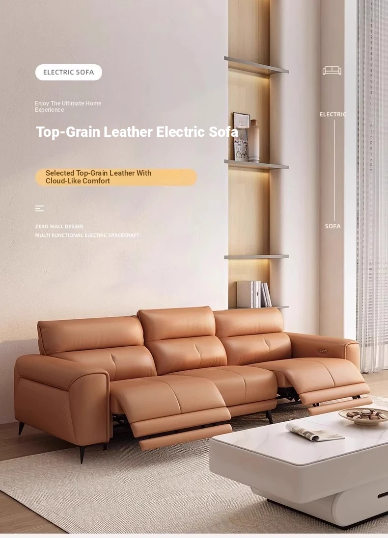 2024 New Italian Minimalist Genuine Leather Electric Sofa for Living Room - Compact 3-Seat Straight Recliner Perfect for Small Spaces
