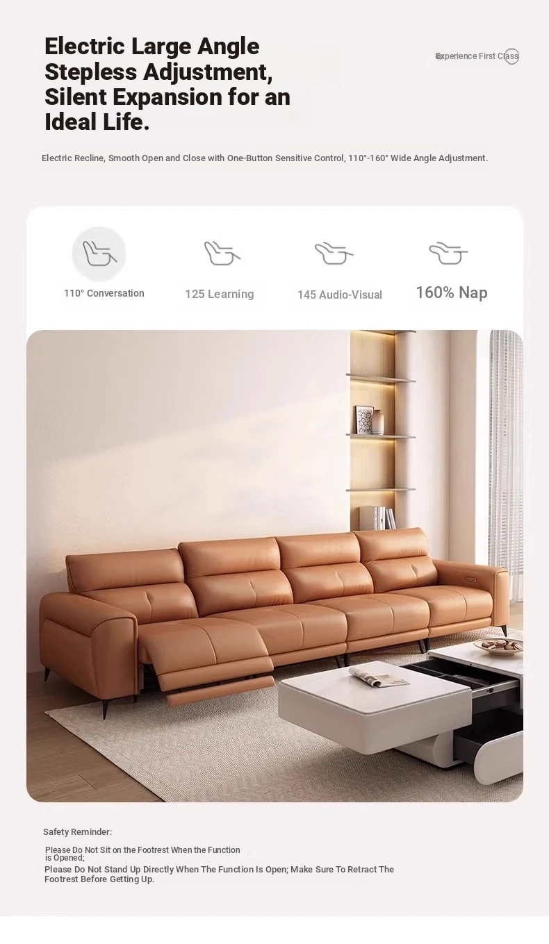Four-person 132.28 in (single electric) [S-class thickened Abrasion Resistant high-quality leather + Import solid wood frame + 45D high rebound sponge]]