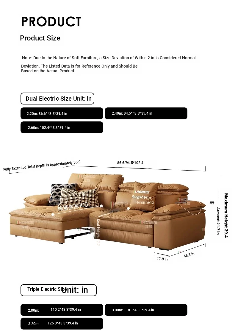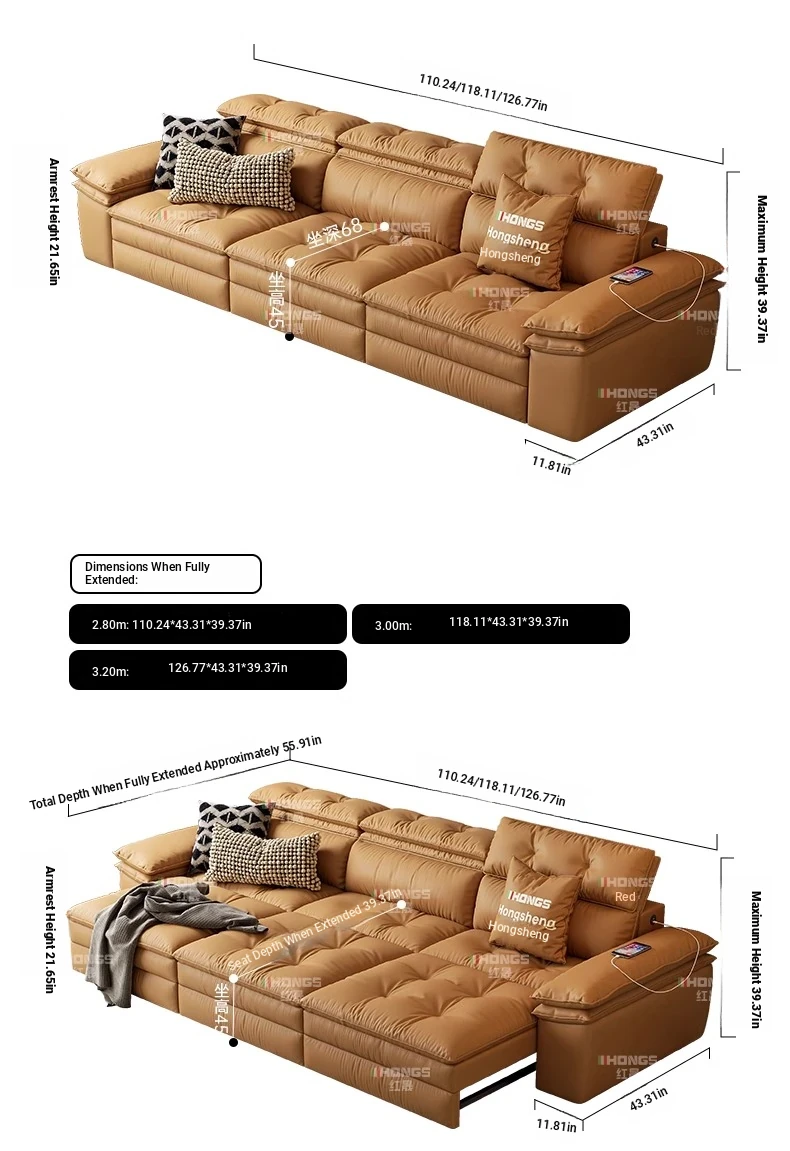2025 New Adjustable Electric Sofa Bed for Small Living Rooms - Wall-Free, Extendable Design with Premium Leather Finish