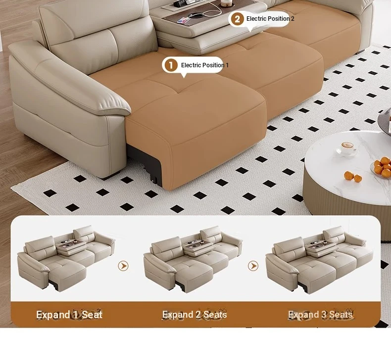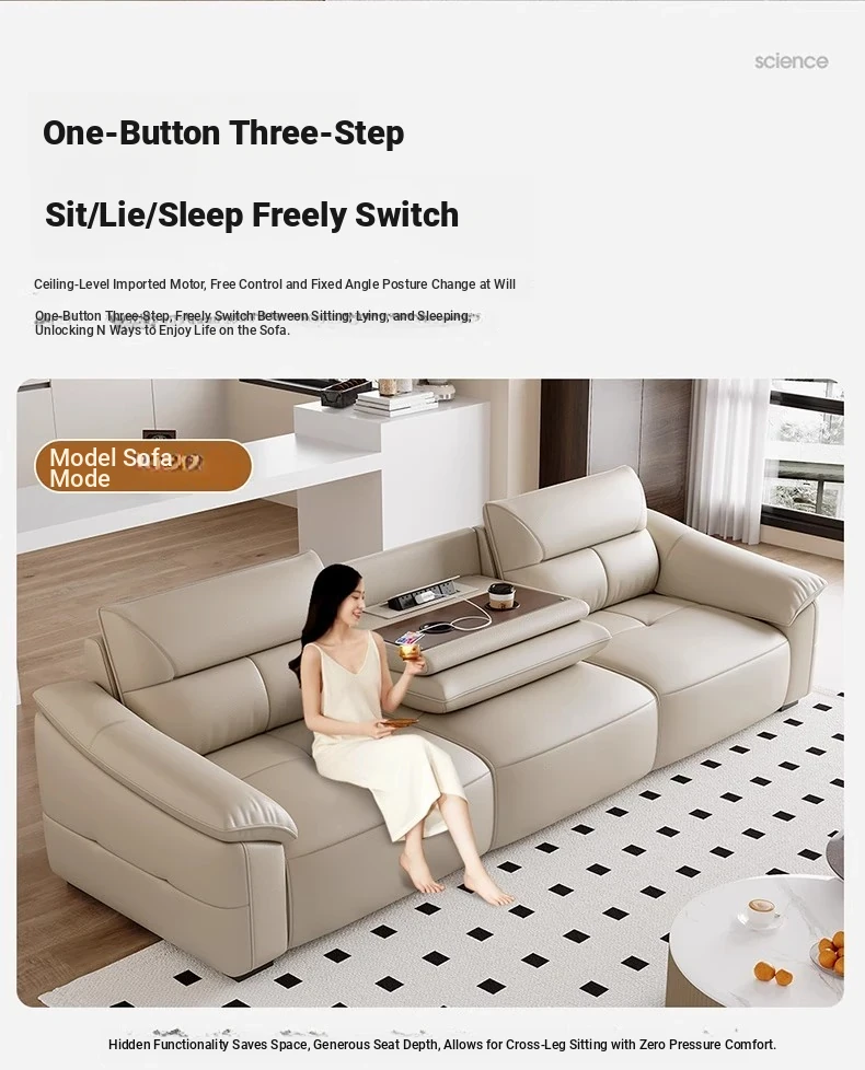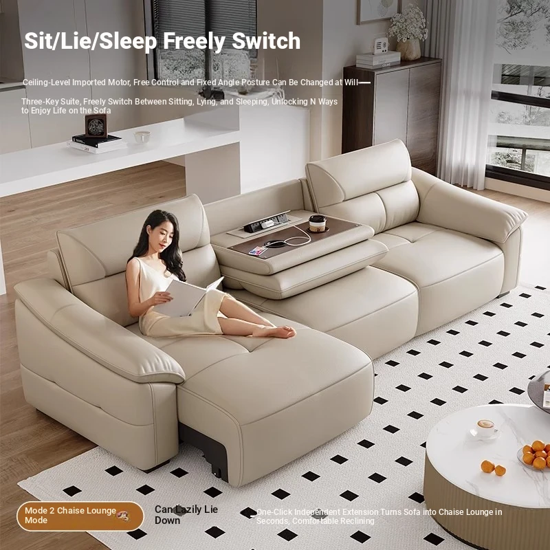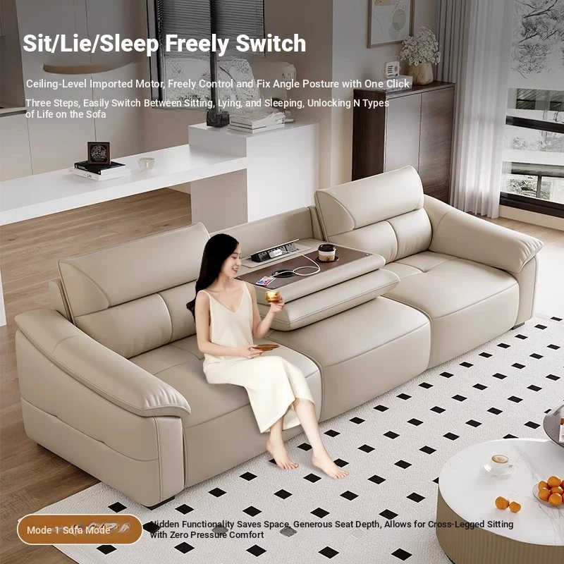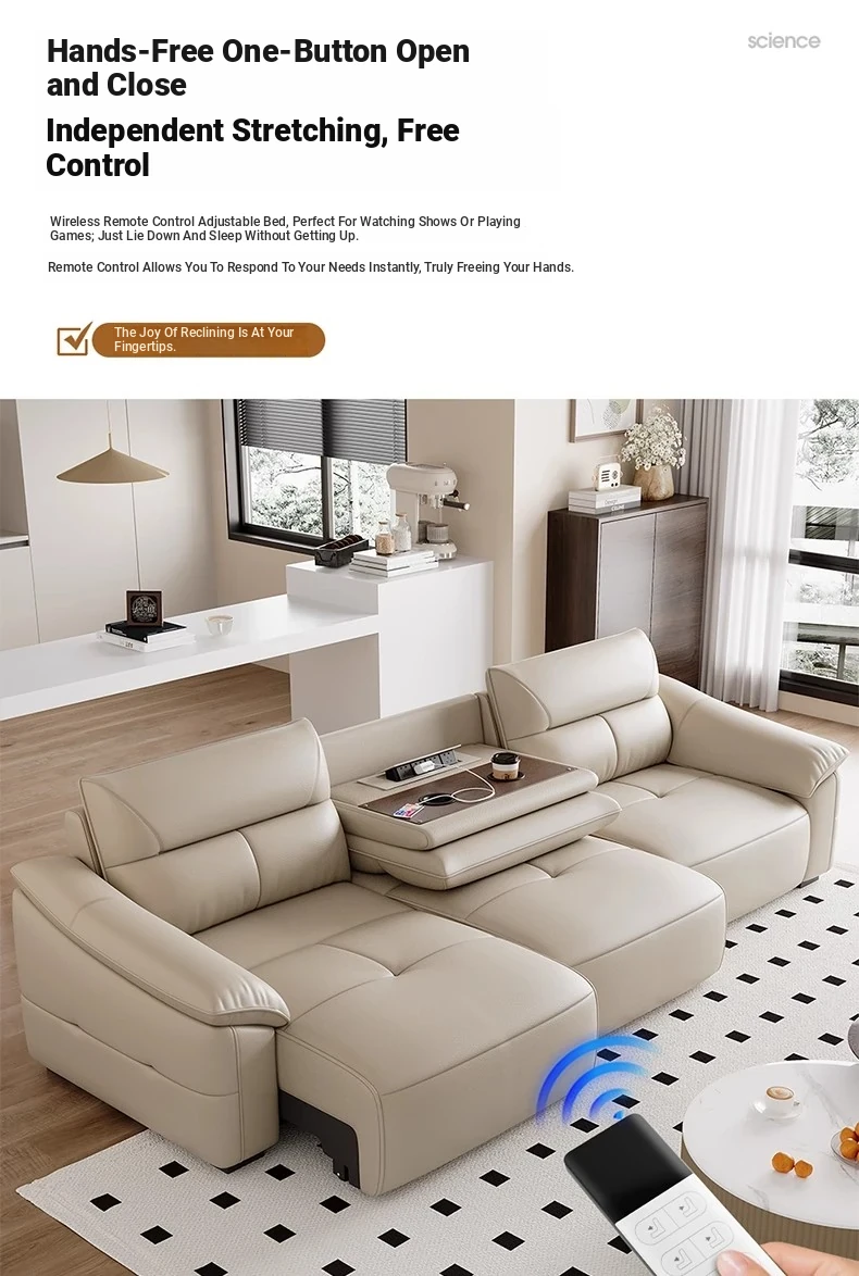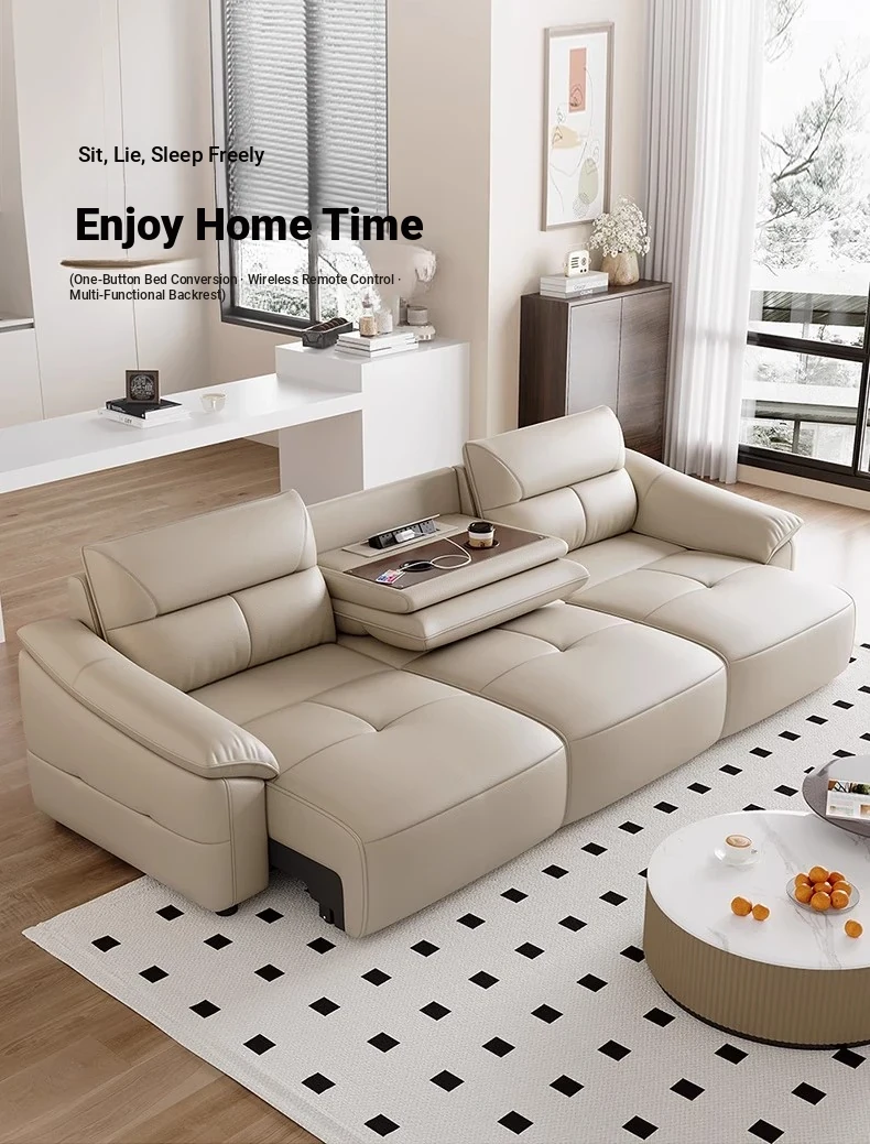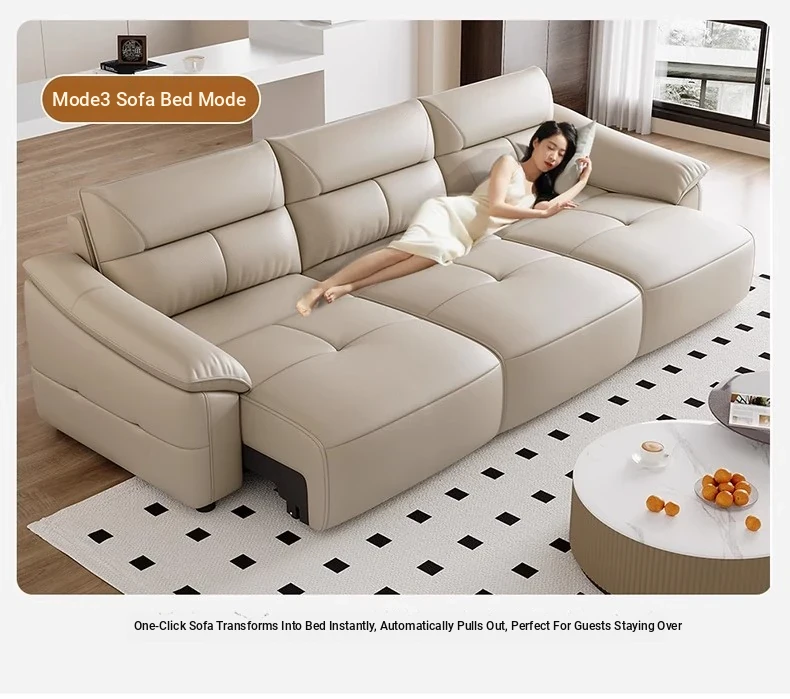 2025 New Arrival: Modern Leather Sofa Bed with Wall-Free Design - Smart Electric Folding Sofa for Living Room, Versatile Two-in-One Functionality