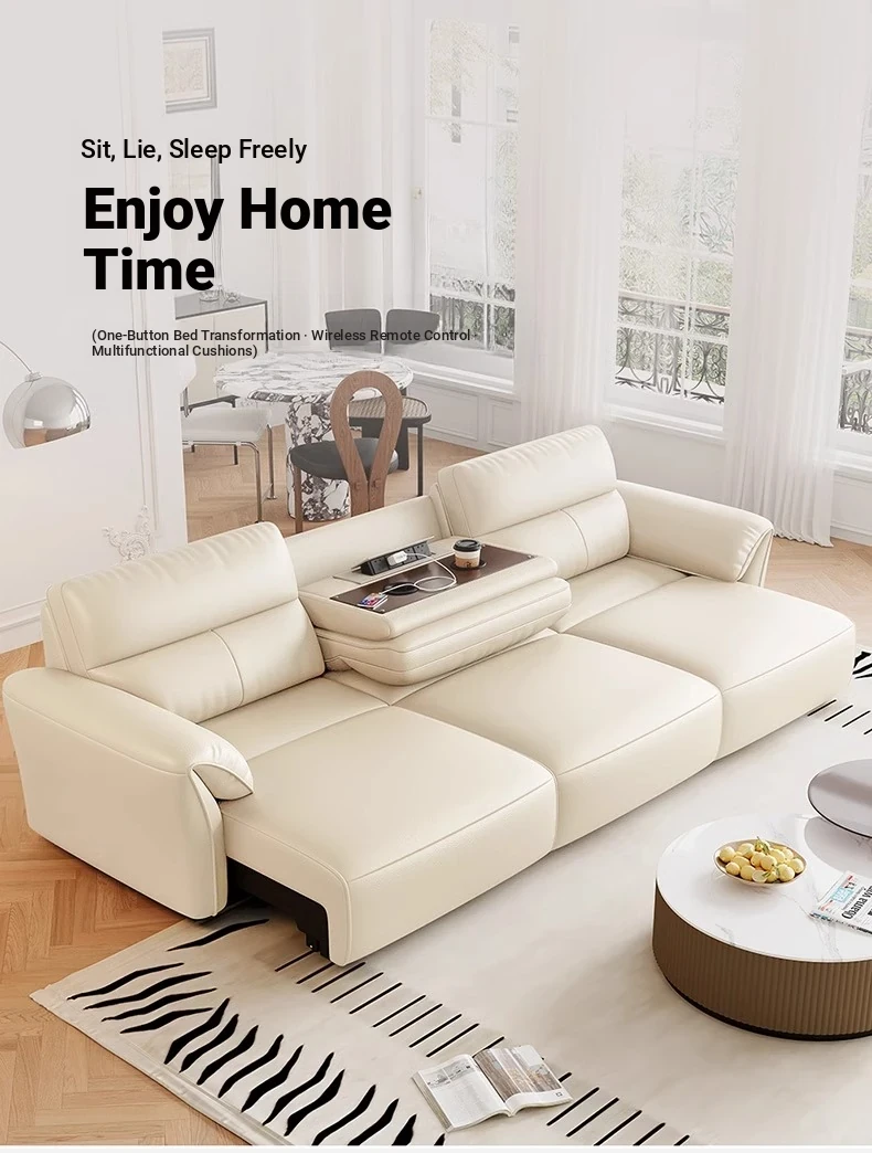 2025 New Multifunctional Leather Sofa Bed for Small Living Rooms - Foldable, Smart Electric Design for Dual Use