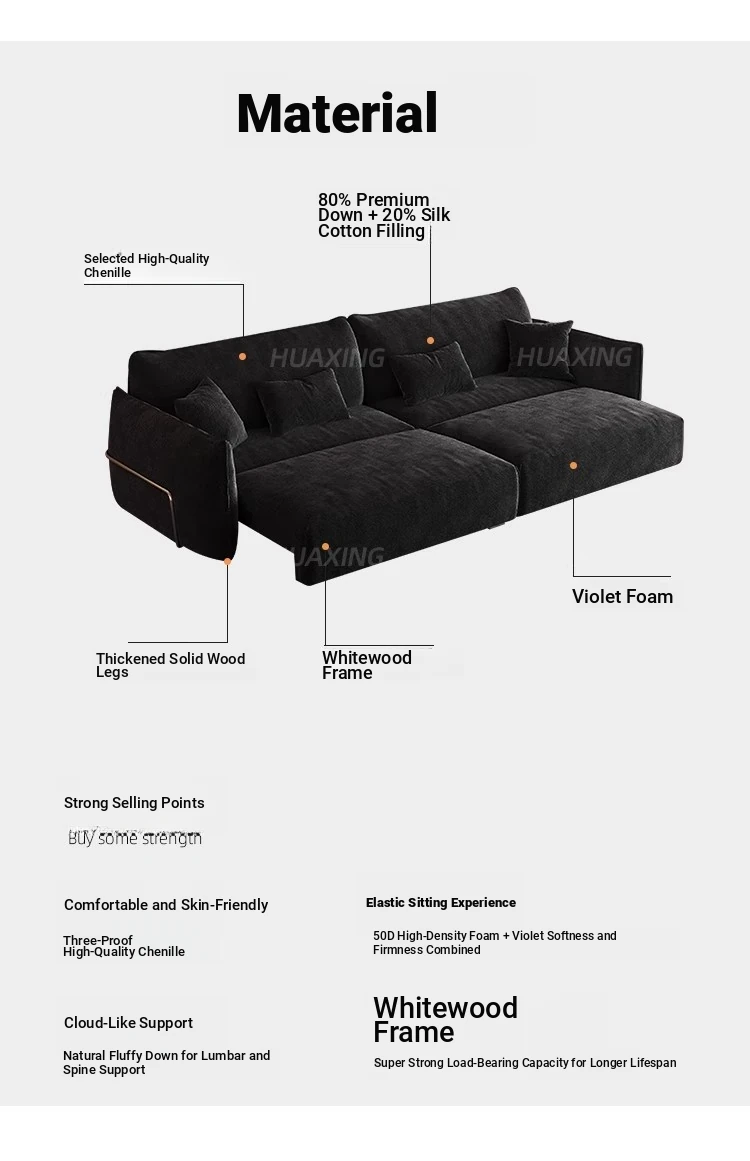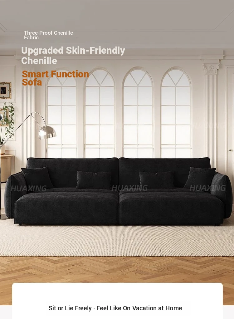 Bauhaus Chenille Fabric Electric Sofa Bed - Retro Style, Adjustable for All Room Sizes, with Expandable Straight Recline Function