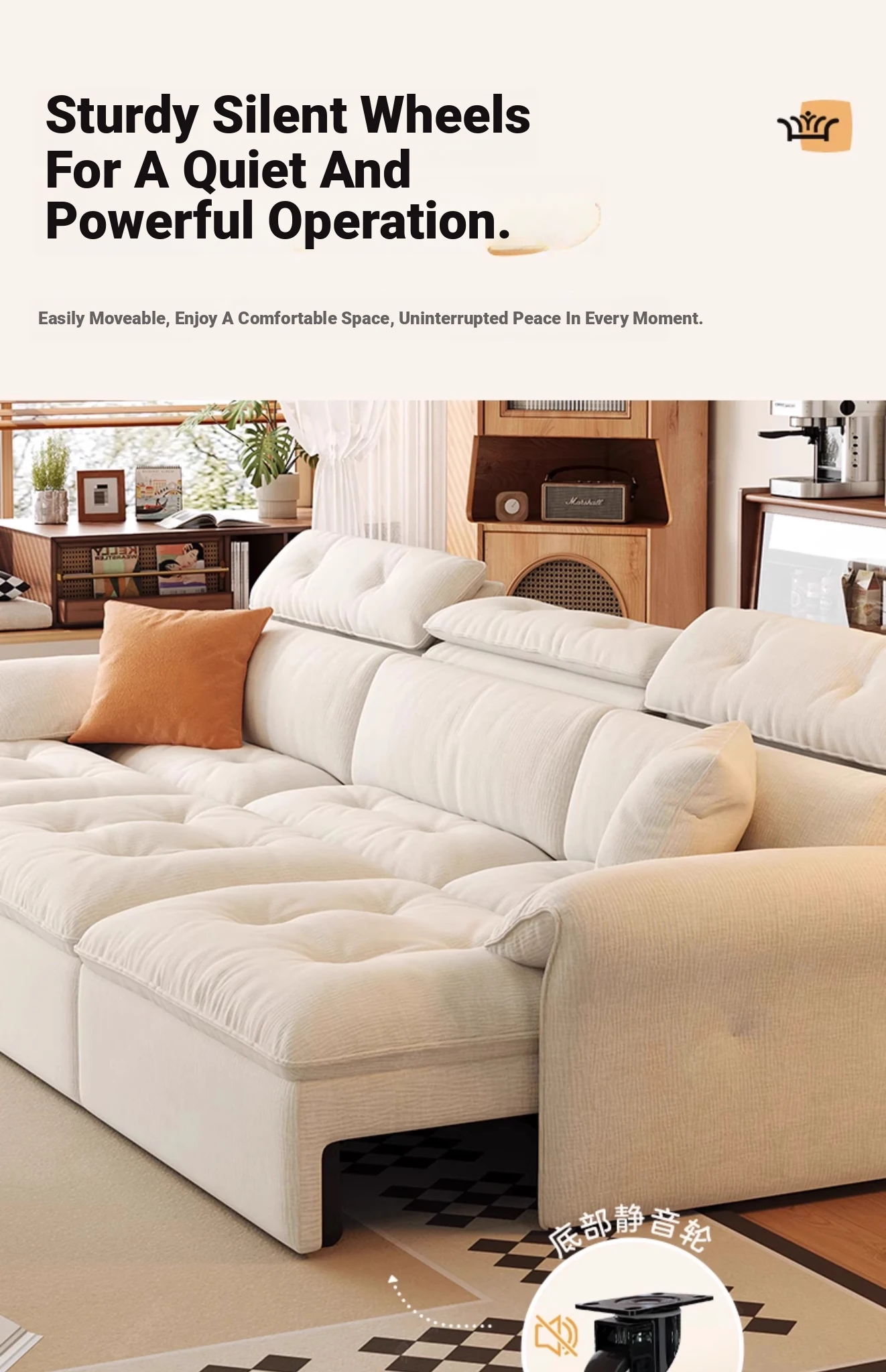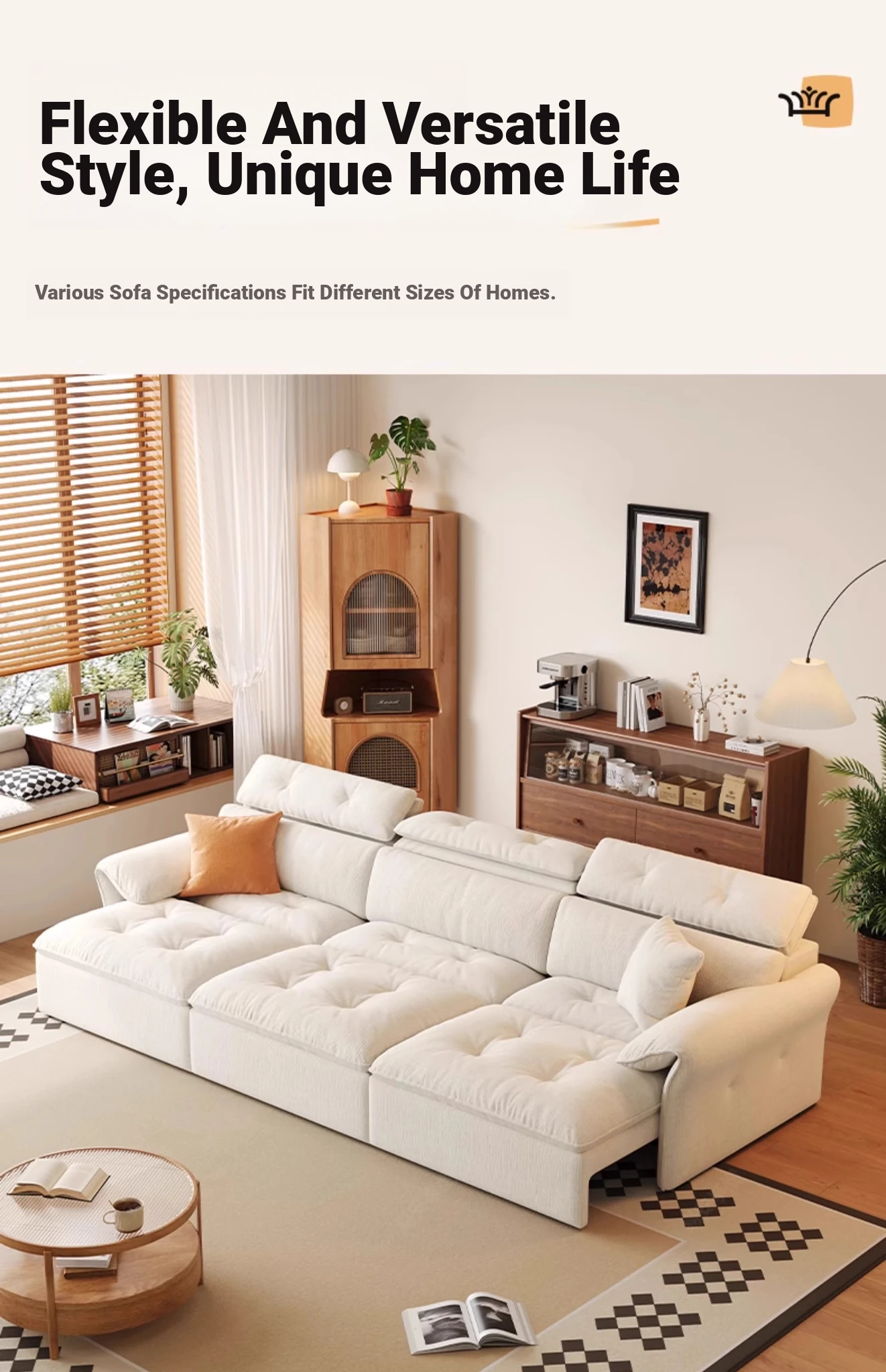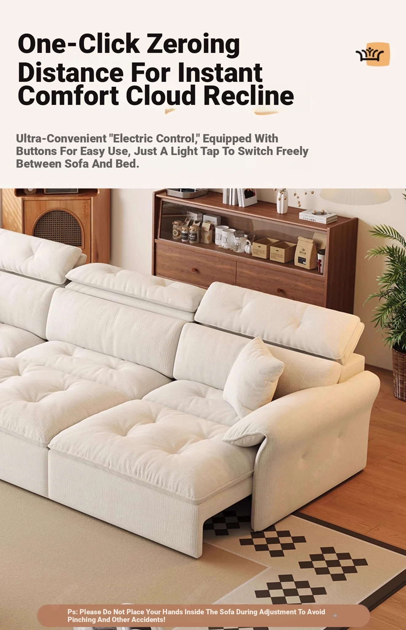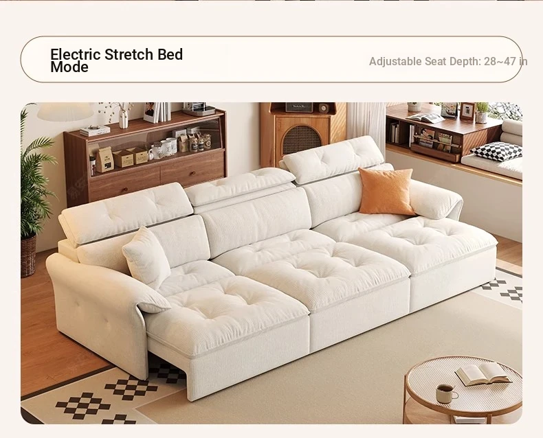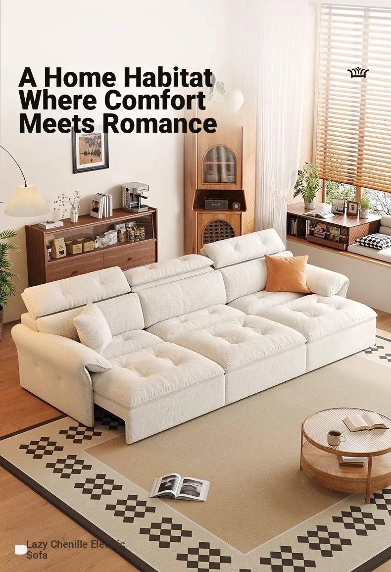 Chic Chenille Electric Sofa Bed - Space-Saving Japanese Cream Style, Versatile Stretchable Fabric Sofa for Small Apartments - Modern Design for Ultimate Comfort and Functionality