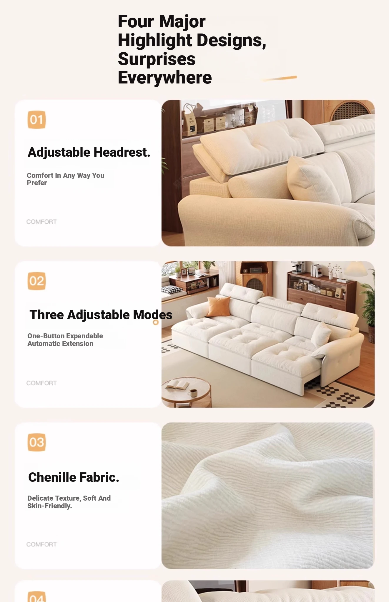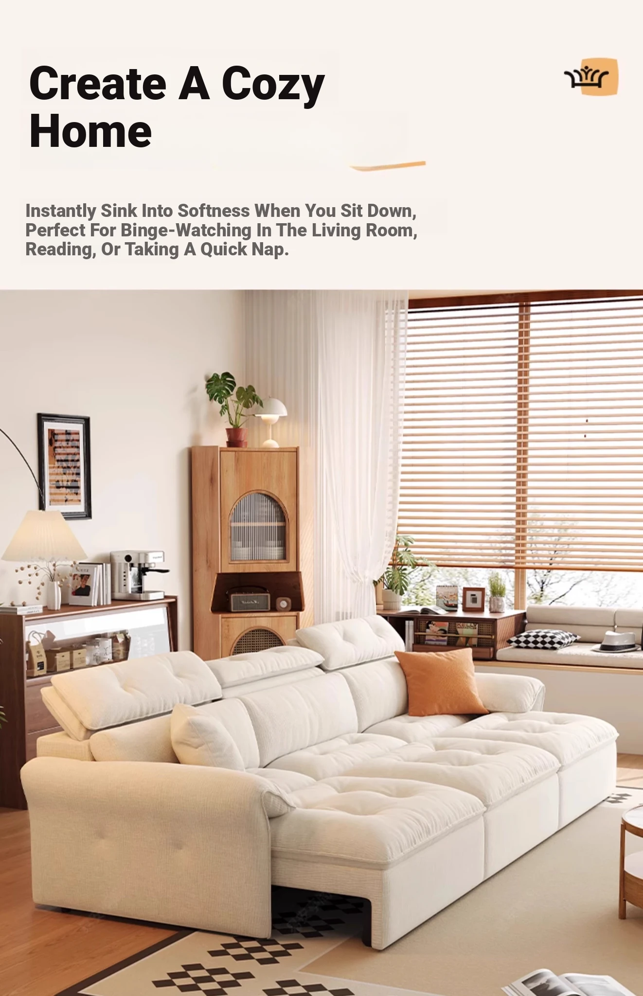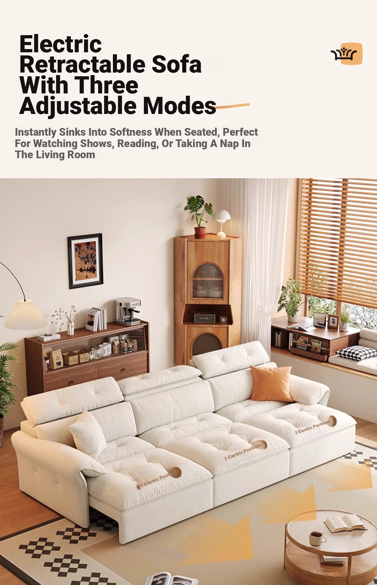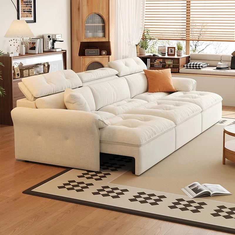 Chic Chenille Electric Sofa Bed - Space-Saving Japanese Cream Style, Versatile Stretchable Fabric Sofa for Small Apartments - Modern Design for Ultimate Comfort and Functionality