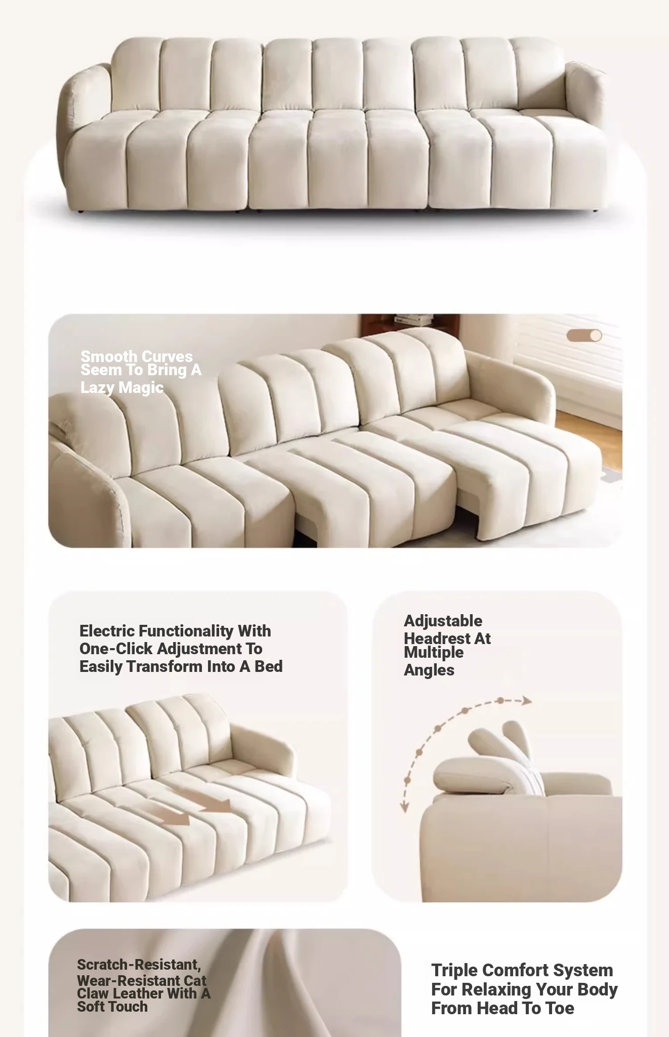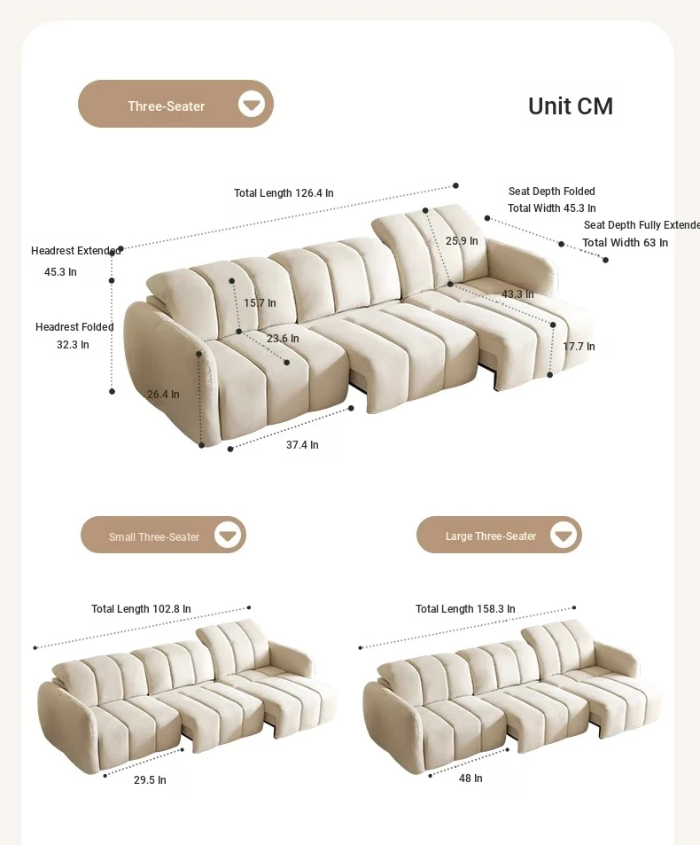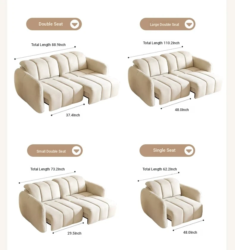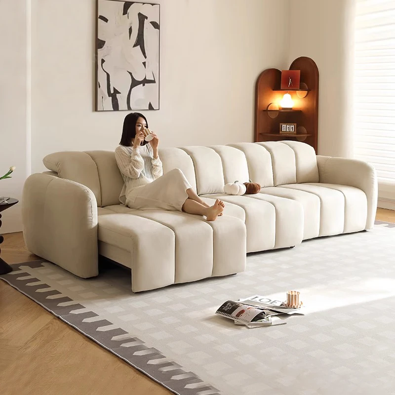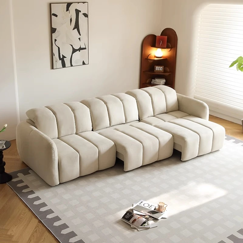 Creamy Piano Key Sofa Bed - Multifunctional Electric Adjustable Sofa with Dual Use, Cat Scratch Resistant Fabric, Perfect for Stylish Living Rooms and Cozy Spaces.
