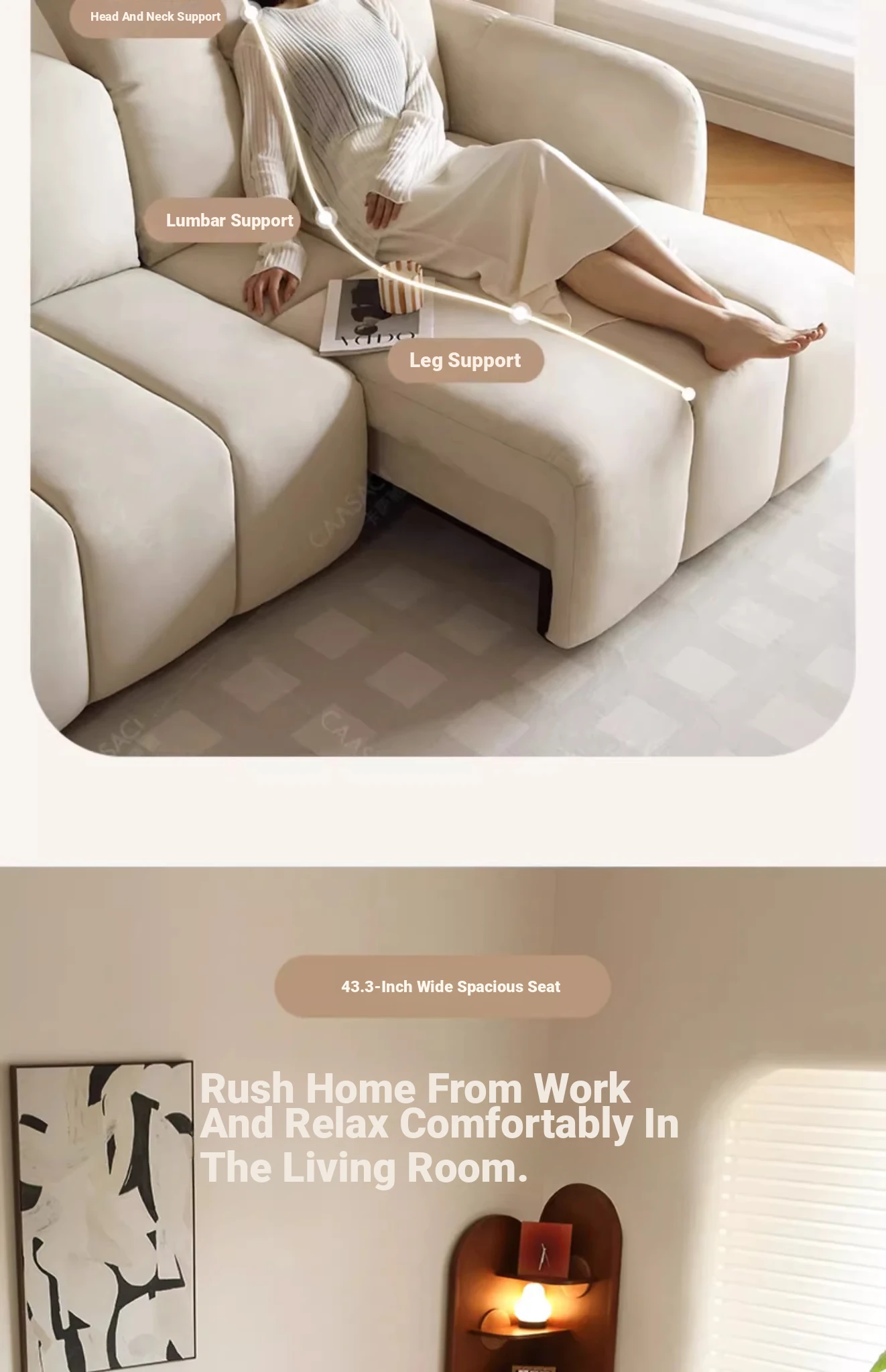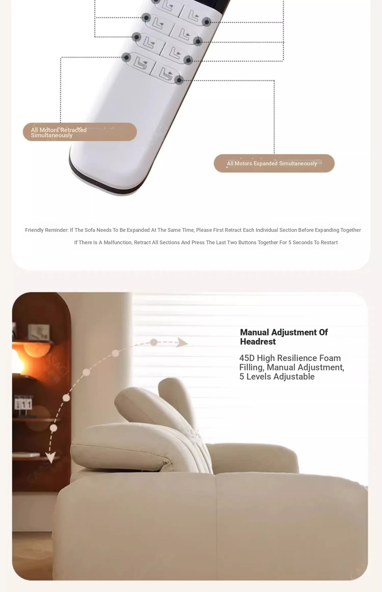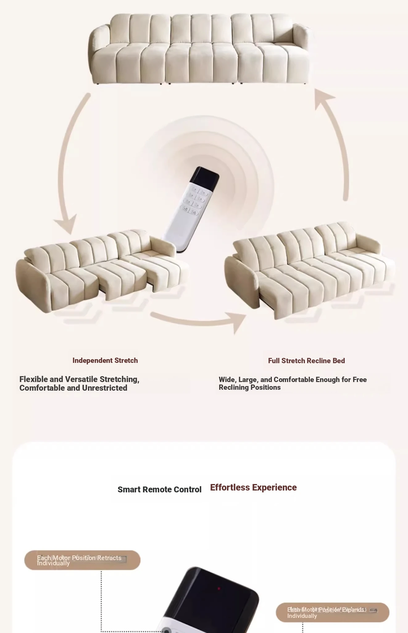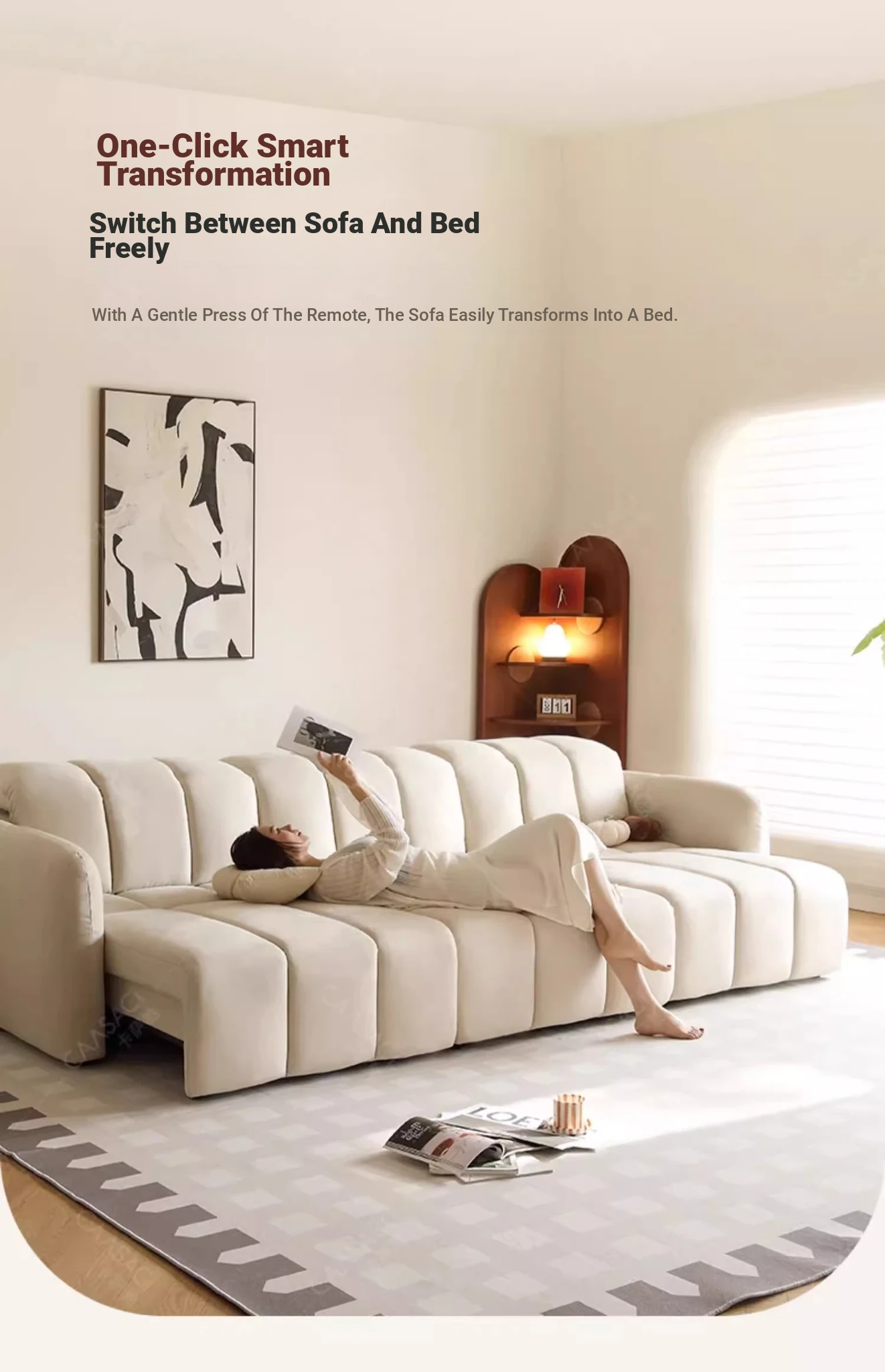 Creamy Piano Key Sofa Bed - Multifunctional Electric Adjustable Sofa with Dual Use, Cat Scratch Resistant Fabric, Perfect for Stylish Living Rooms and Cozy Spaces.