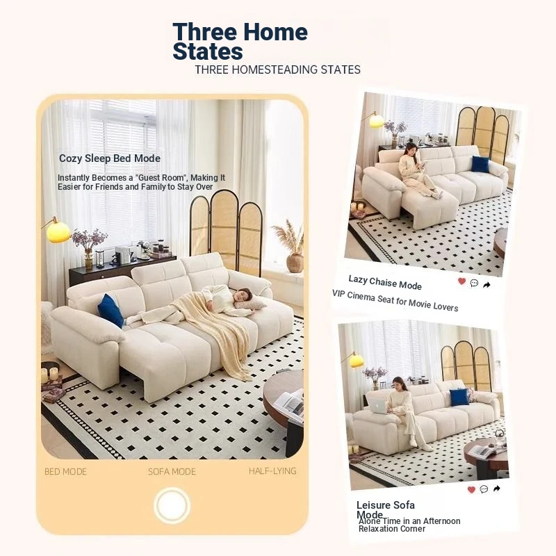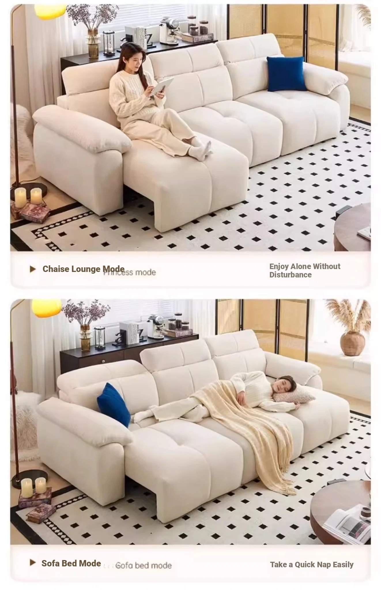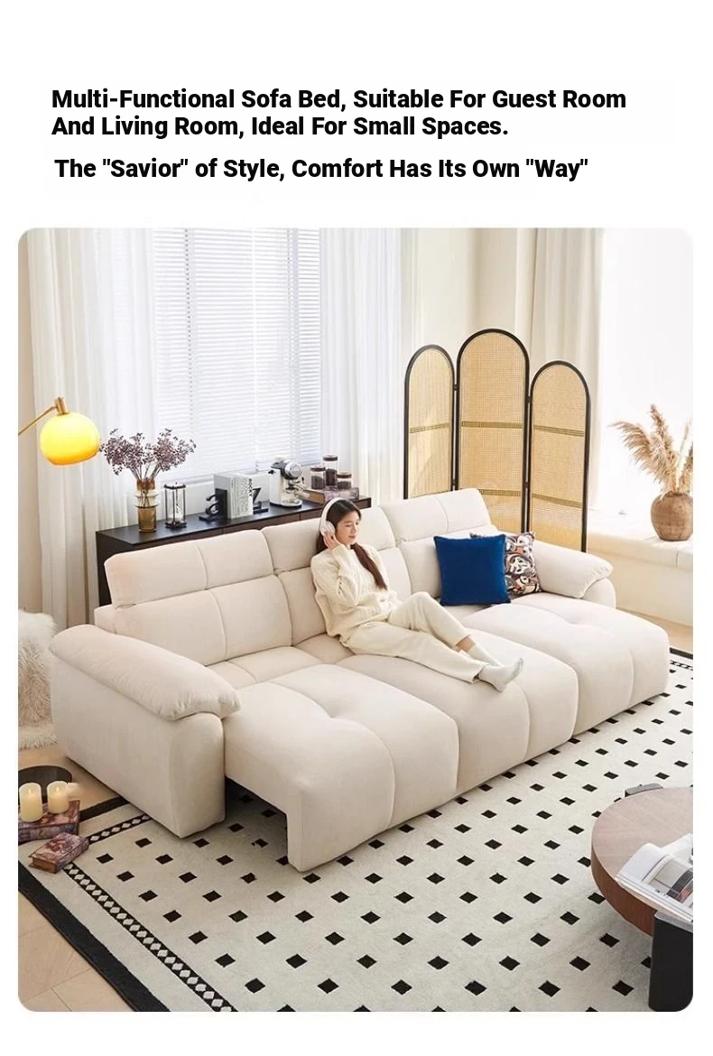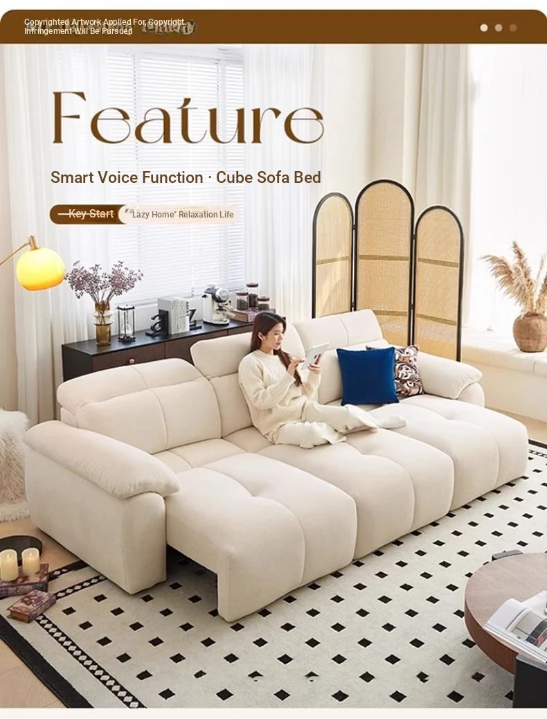 Creamy Wind Electric Sofa Bed - Multi-functional, Expandable, Space-saving for Small Living Rooms, Simple Design with Cat Scratch-resistant Fabric