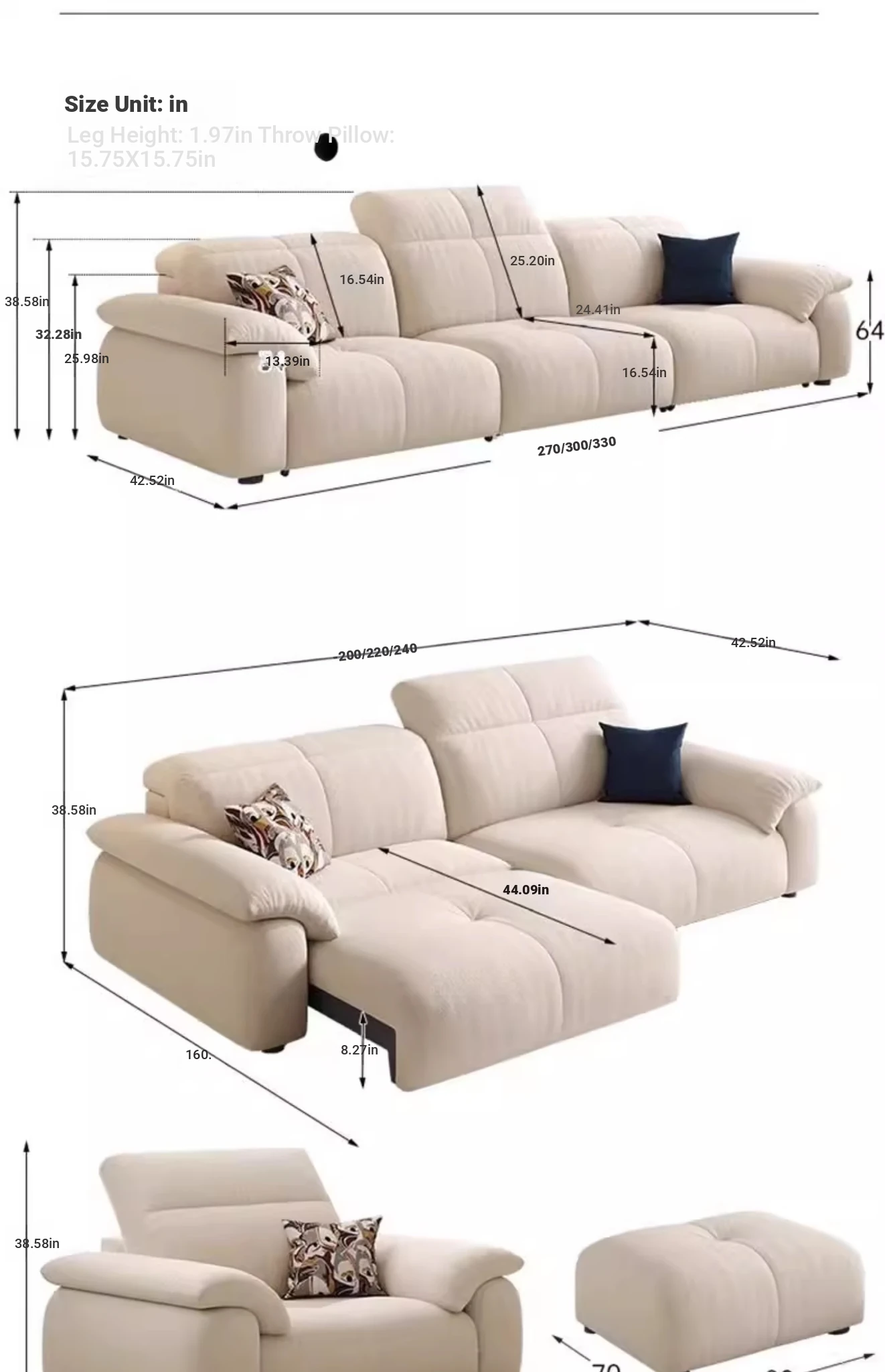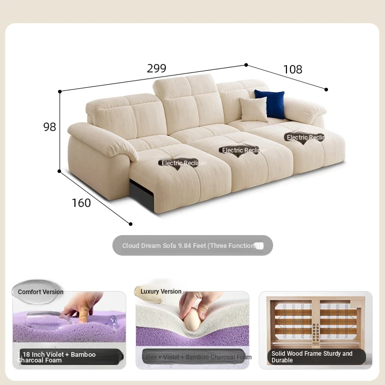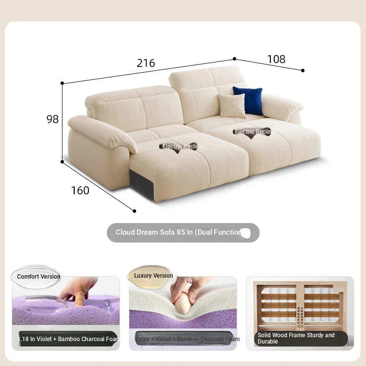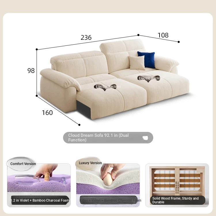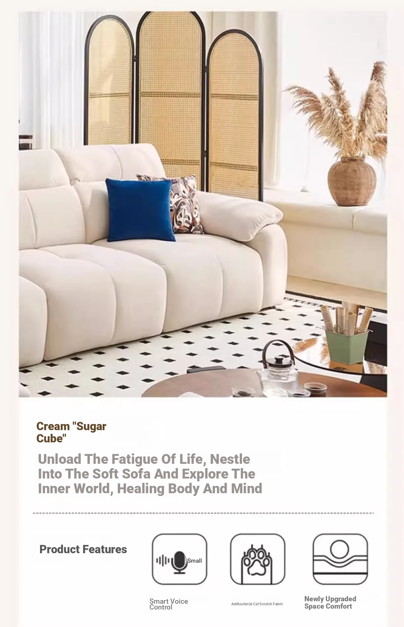 Creamy Wind Electric Sofa Bed - Multi-functional, Expandable, Space-saving for Small Living Rooms, Simple Design with Cat Scratch-resistant Fabric