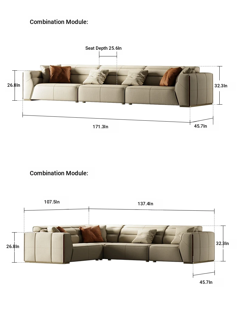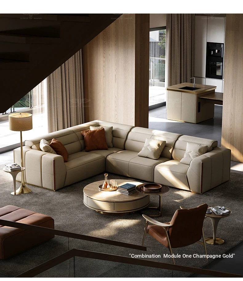 Designer Luxury Leather Sofa for Living Room - High-End Modern Light Luxury Sofa for Villas and Spacious Apartments