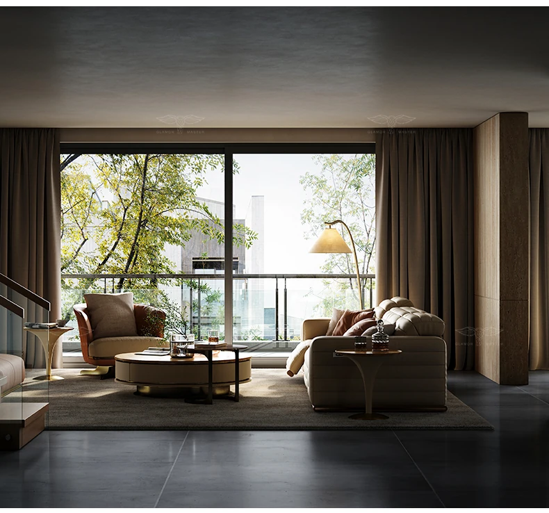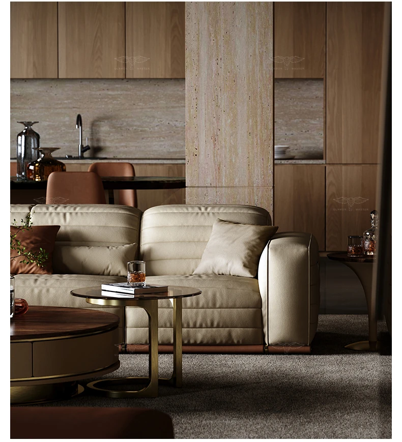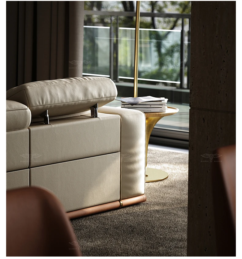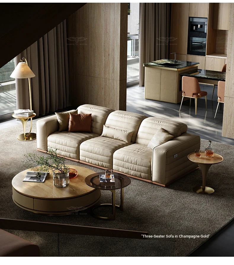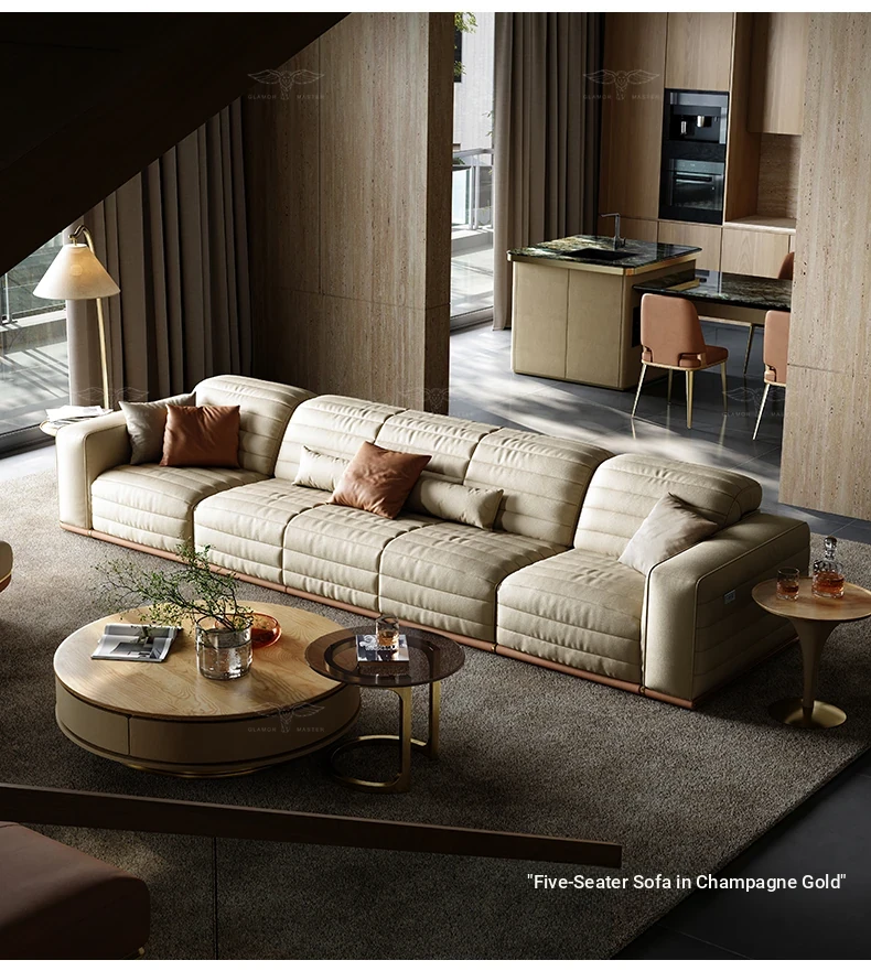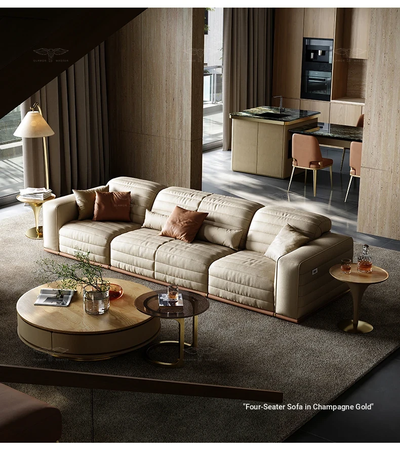 Designer Premium Leather Sofa for Luxury Villas and Spacious Homes - Modern Light Luxury for Your Living Room