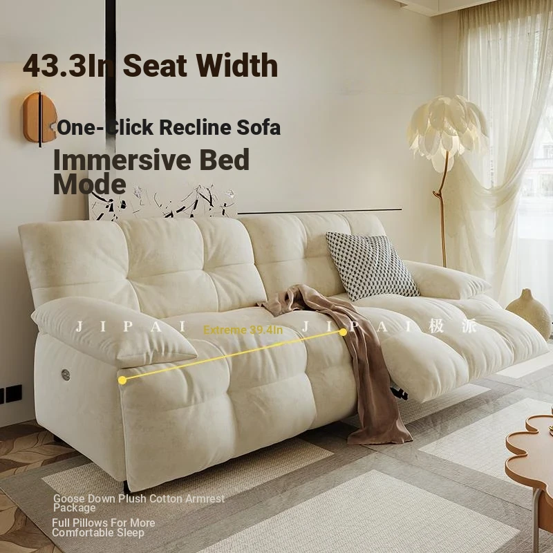 Elegant Cream-Colored Electric Goat Cashmere Sofa for Small Living Rooms - Immersive Luxury 3-Seater Functional Couch for Ultimate Relaxation