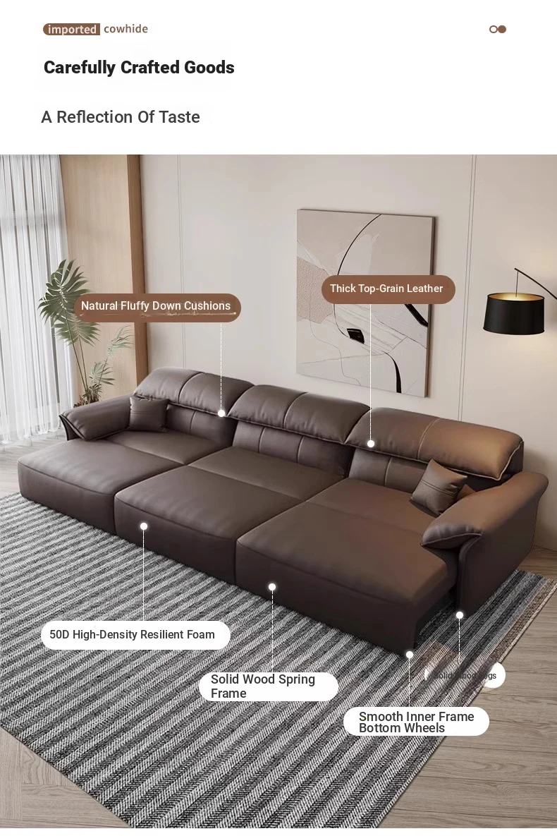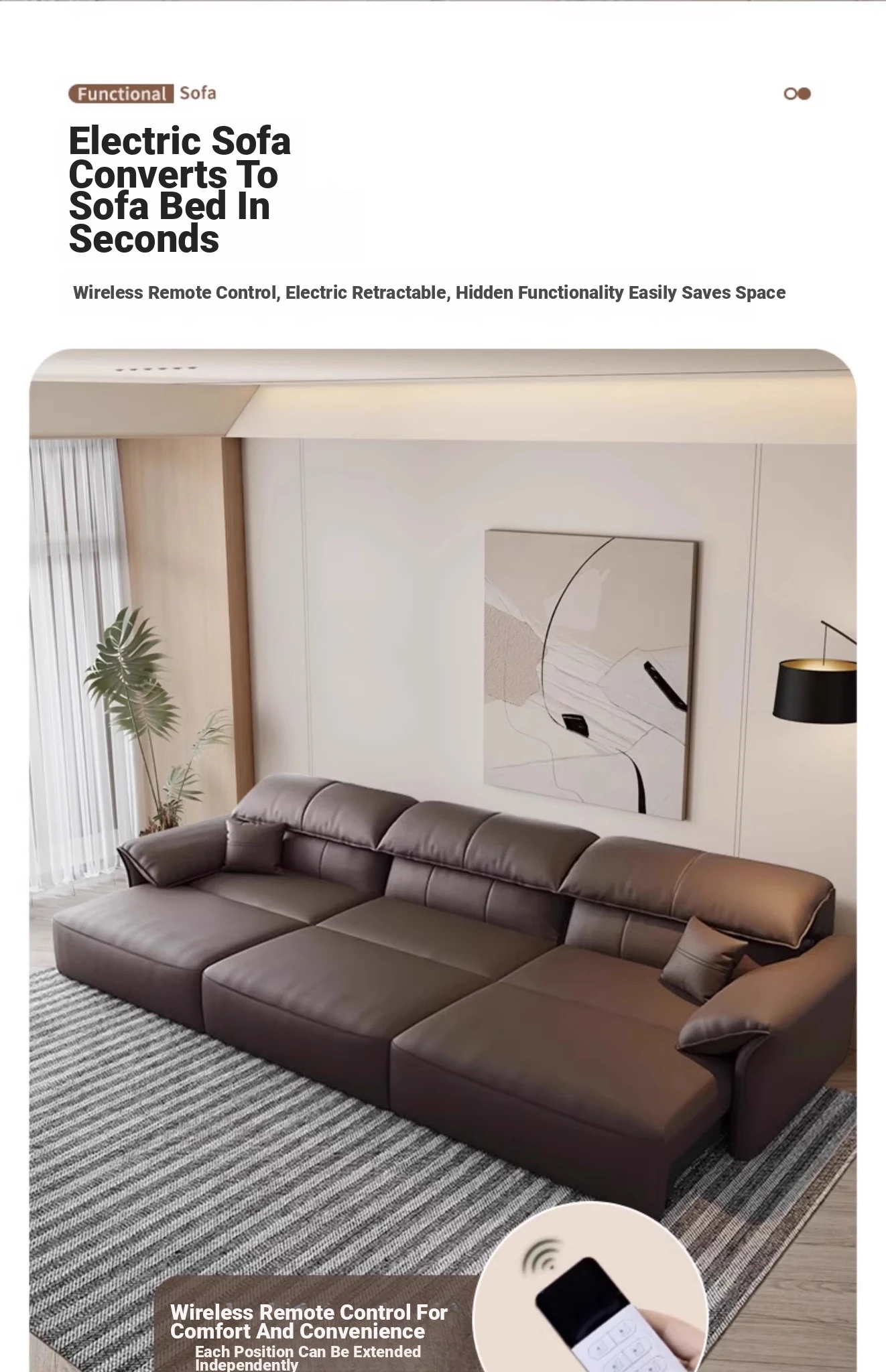 Elephant Ear Electric Leather Sofa Bed - Versatile, Extendable, Multi-Functional for Spacious Living Rooms - Italian Style Light Luxury Design