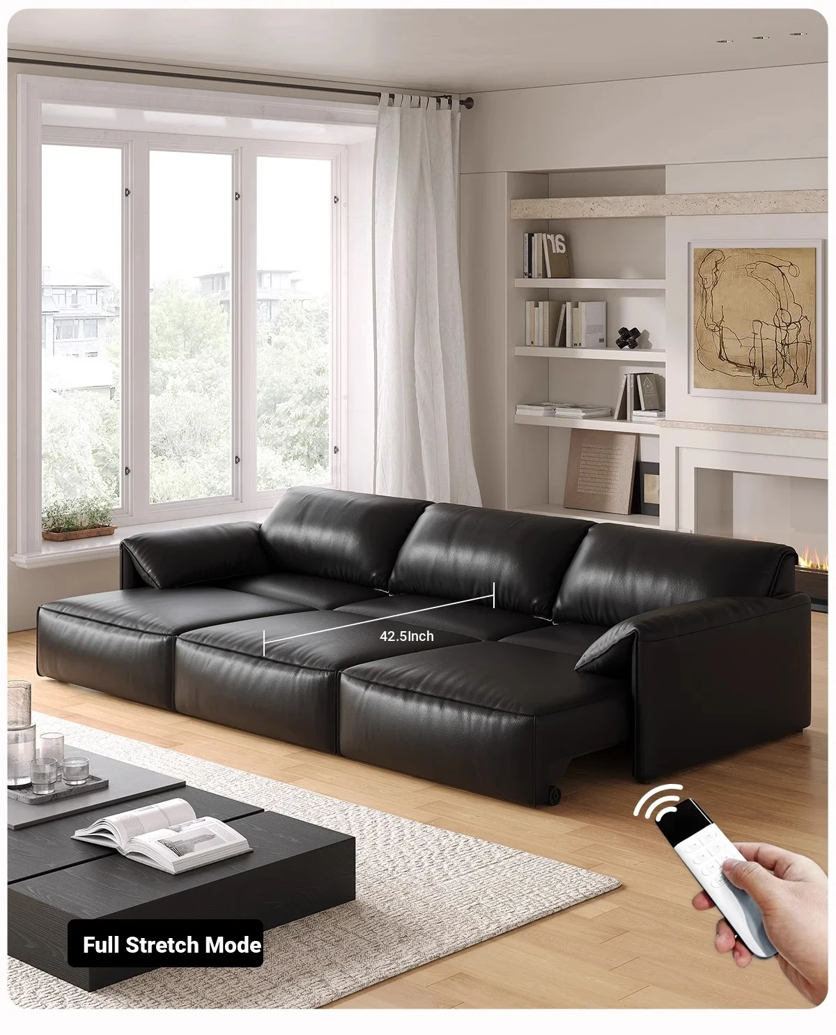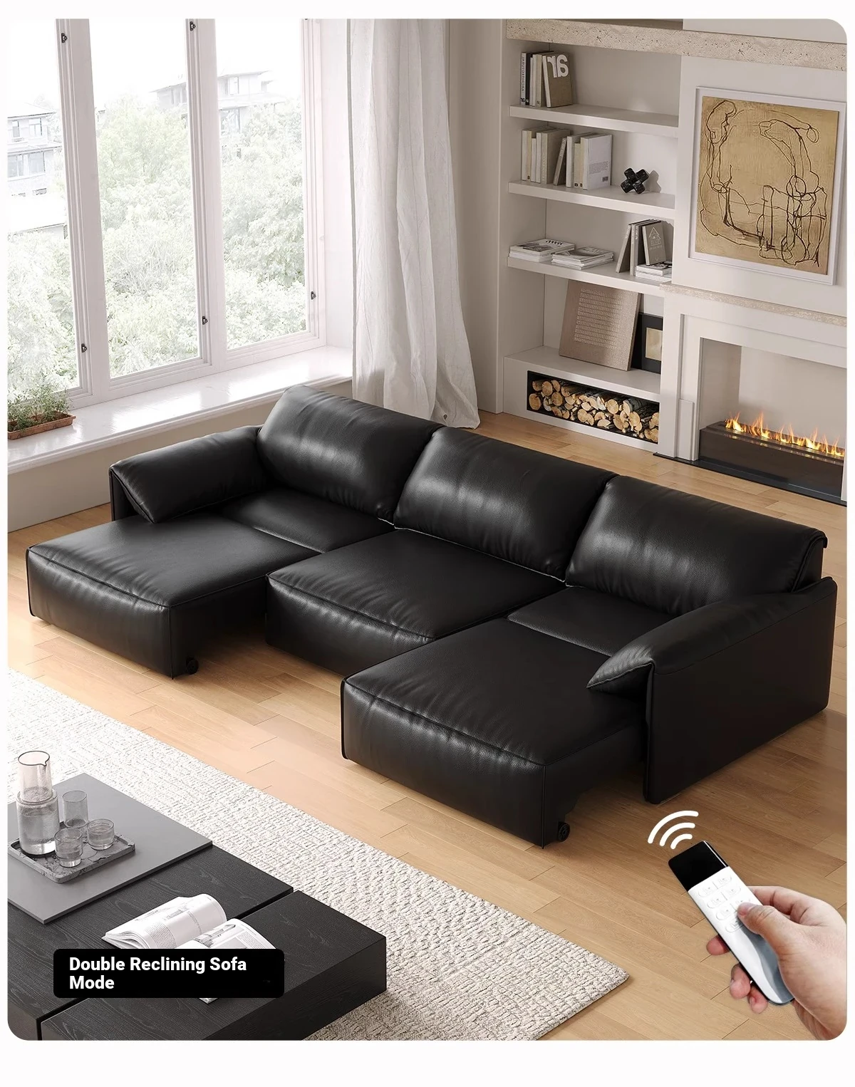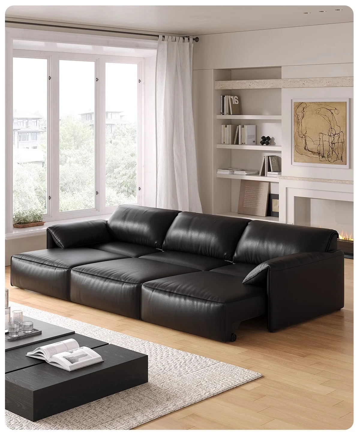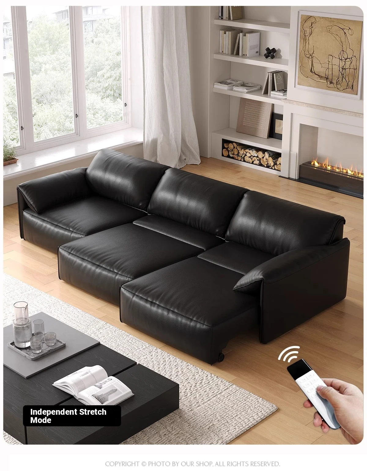 Elephant Ear Electric Sofa - Expandable Multi-Functional Living Room Sofa in Premium Leather, Minimalist Italian Design, Luxurious Black Elegance