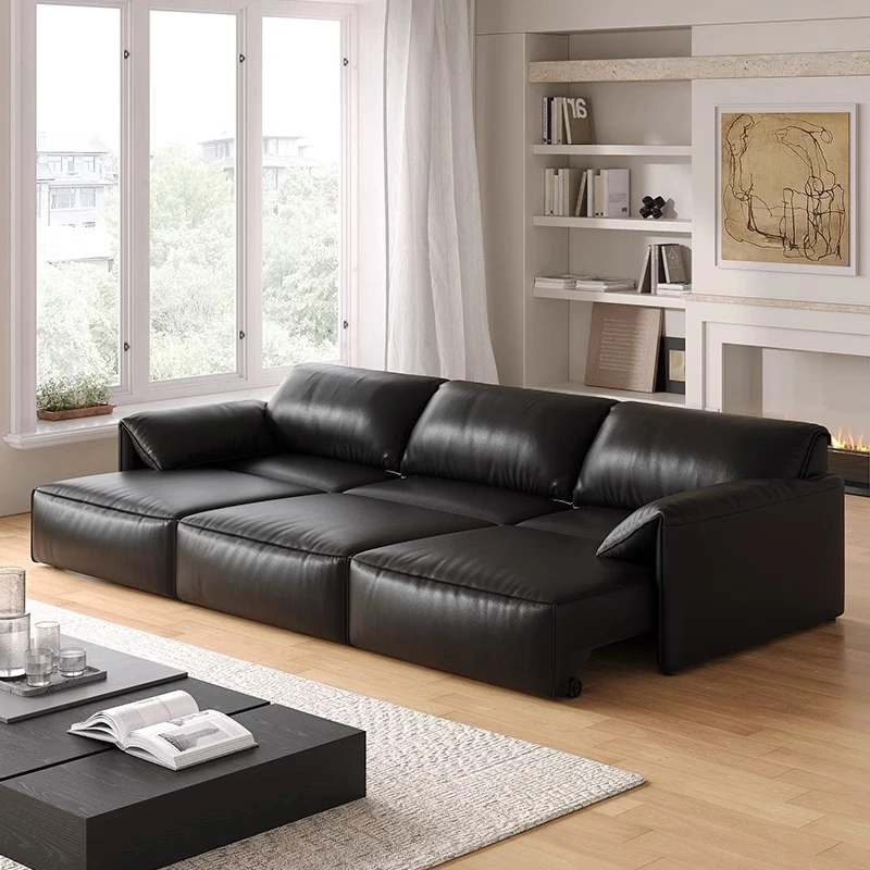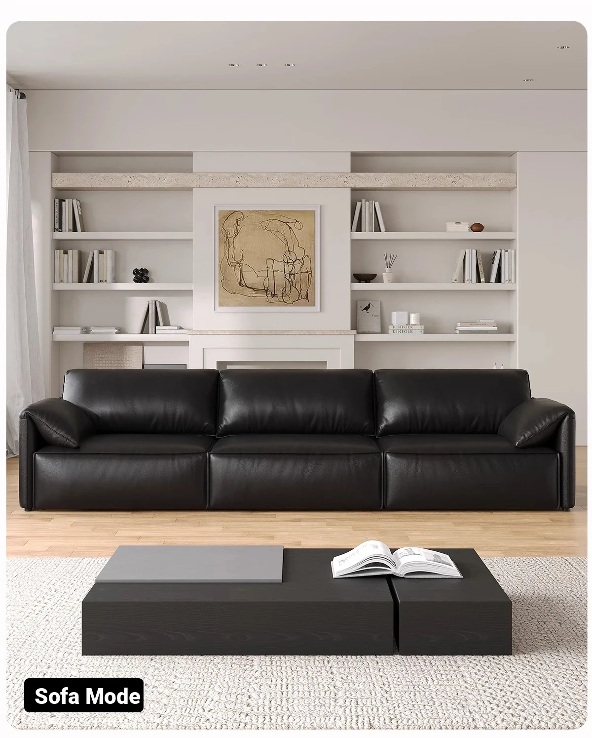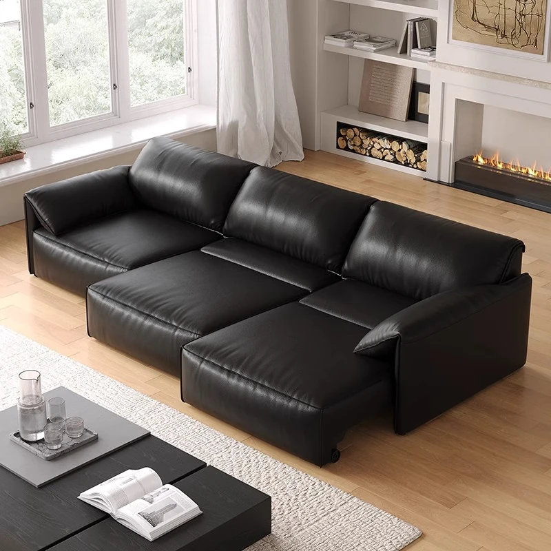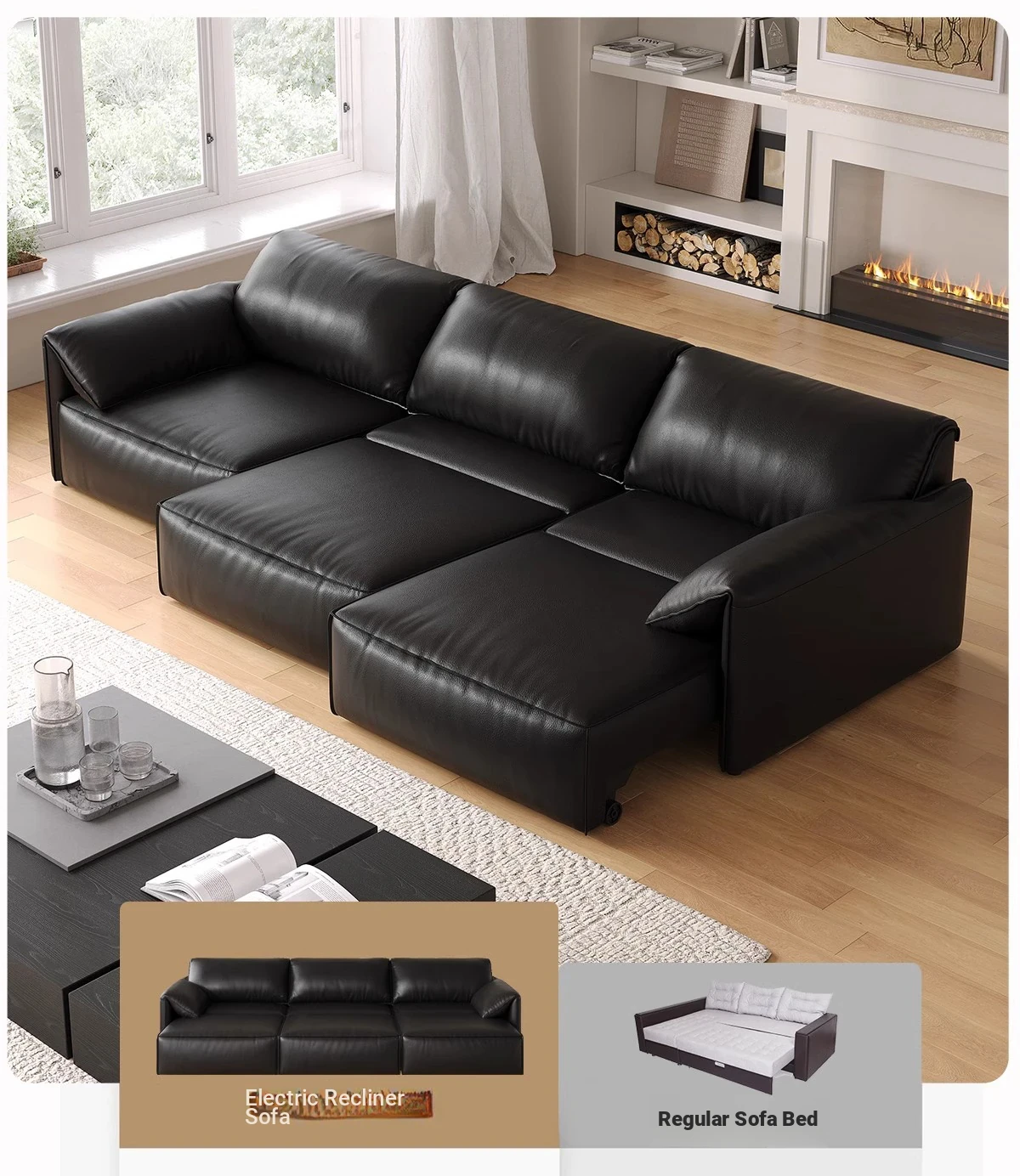 Elephant Ear Electric Sofa - Expandable Multi-Functional Living Room Sofa in Premium Leather, Minimalist Italian Design, Luxurious Black Elegance