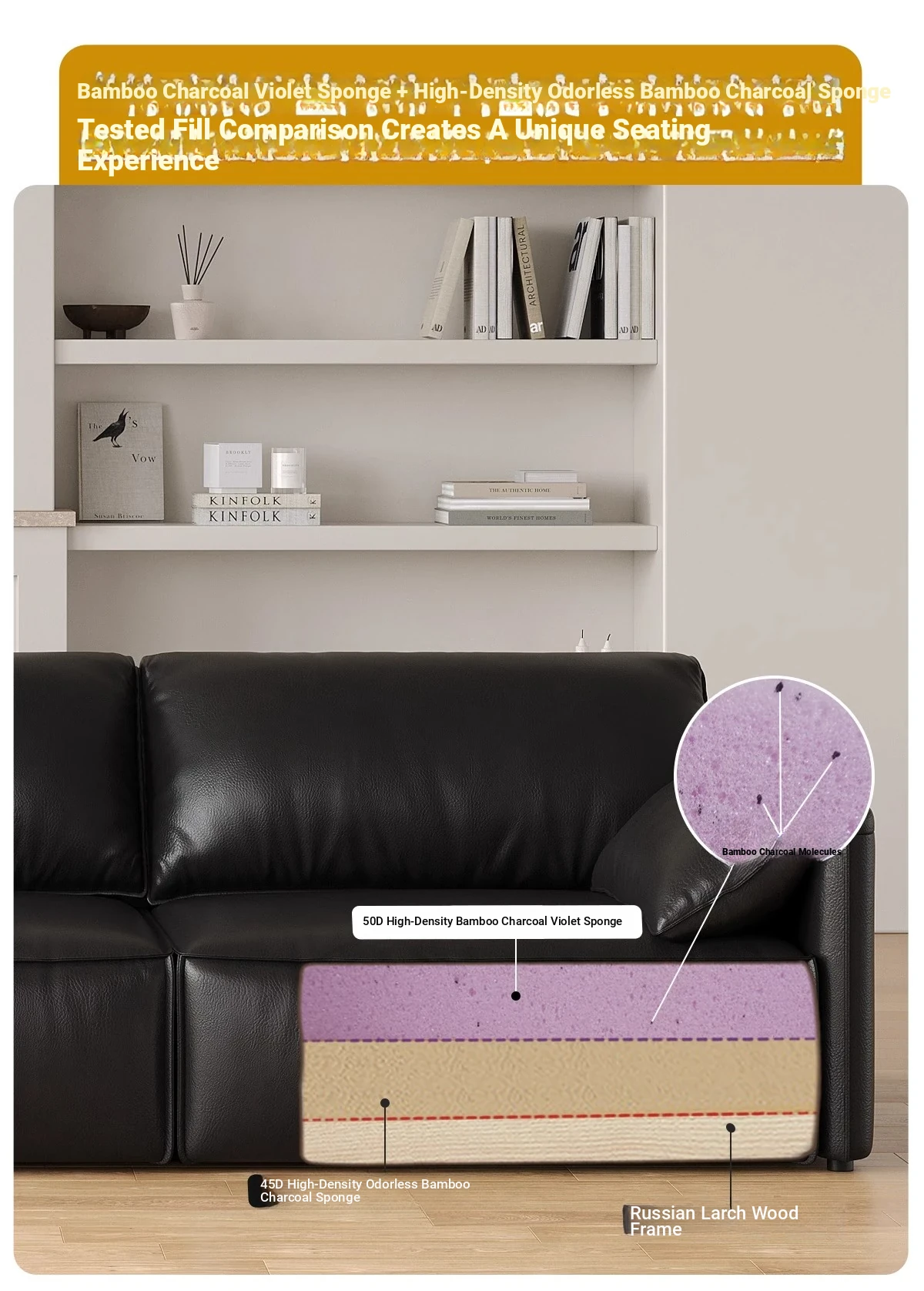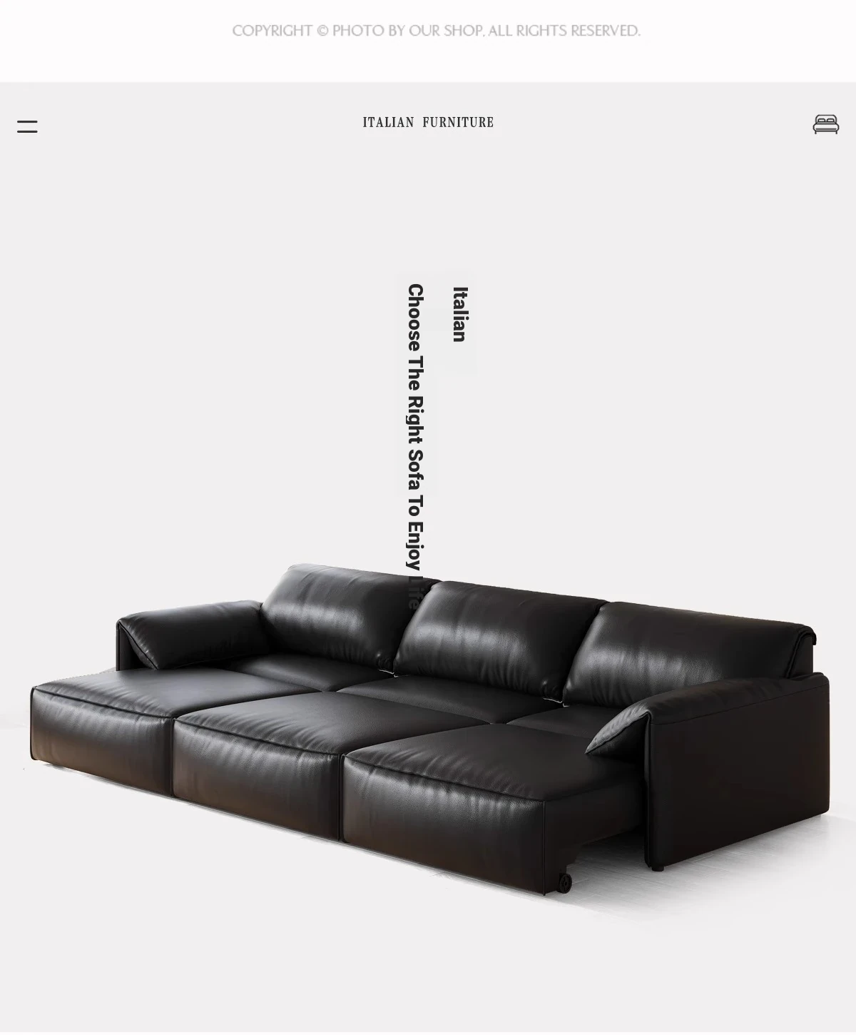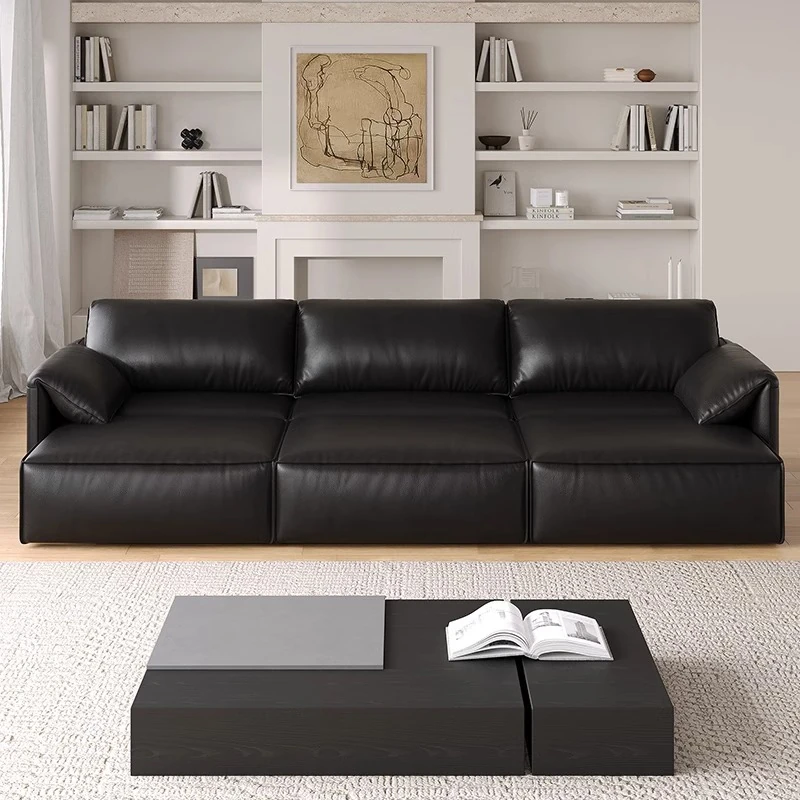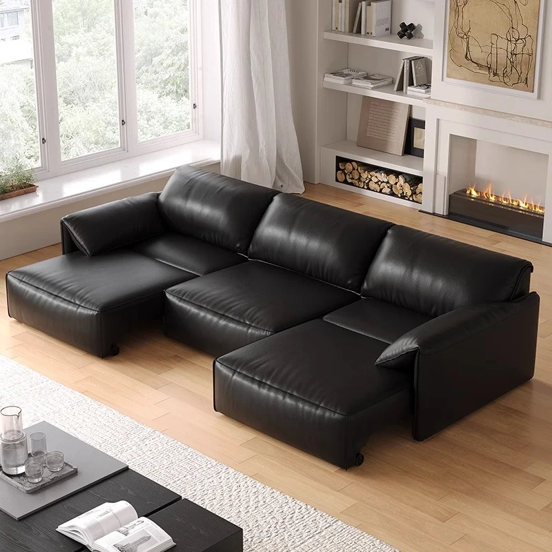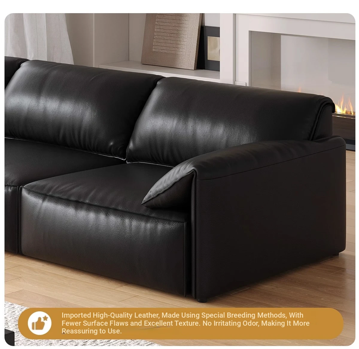 Elephant Ear Electric Sofa - Expandable Multi-Functional Living Room Sofa in Premium Leather, Minimalist Italian Design, Luxurious Black Elegance